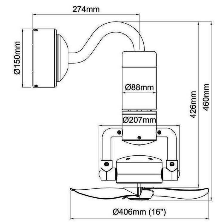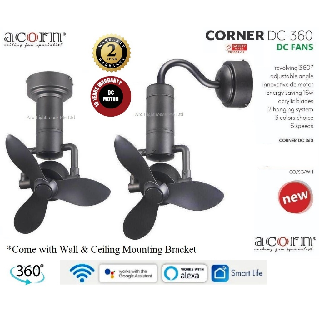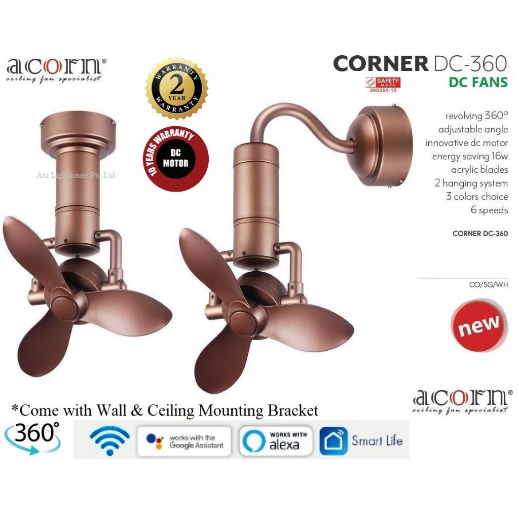 ACORN CORNER FAN DC-360- WALL / CEILING MOUNTED