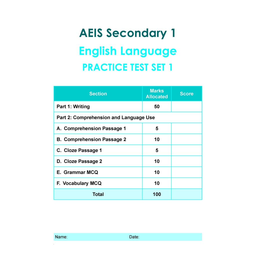 AEIS Practice Tests English & Writing for Secondary Levels 1-3 | Revision & Guide | Secondary English Assessment Books