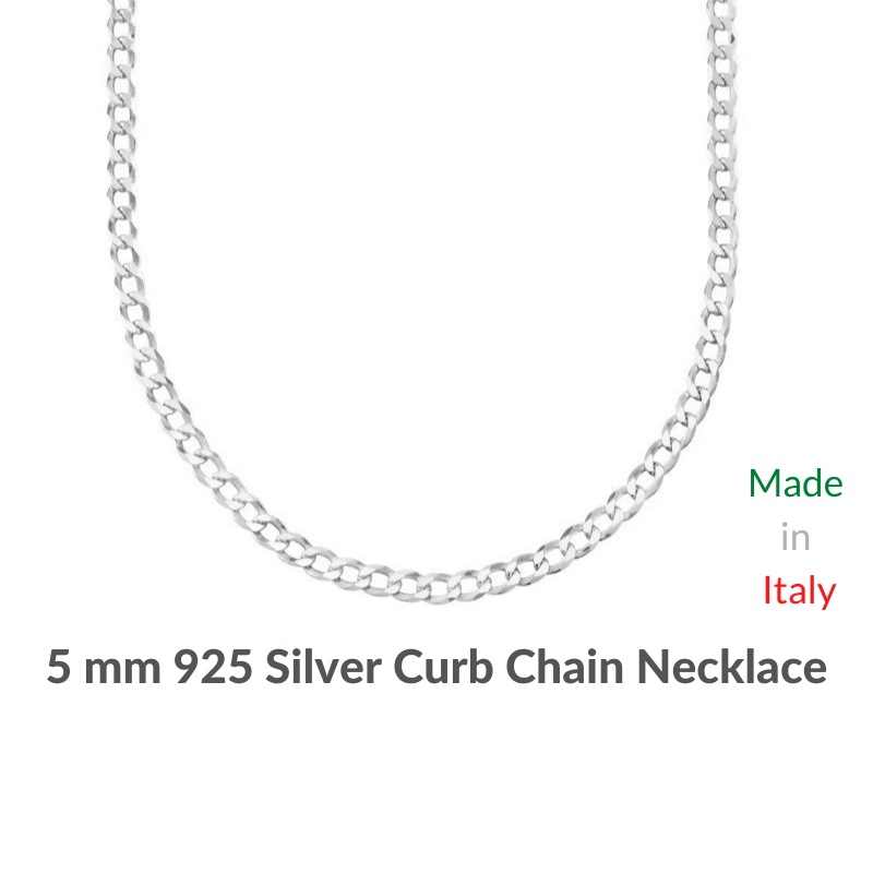 AGALIL Italy 925 Sterling Silver 5 mm Men Curb Chain Necklace. 16 18 20 22 24 26 28 30 inch. Italian s925 Man Grumetta