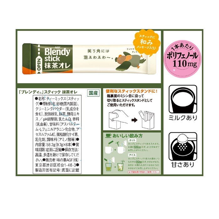 AGF Blendy Matcha Au Lait x 18 pcs Box Matcha Latte Maccha au Lait Instant Matcha Drink Powder Stick Green Tea Matcha Powder Matcha Drink