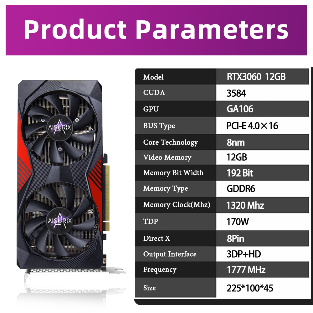 AISURIX RTX3060 12GB Graphics Card GPU NVIDIA Computer Video Card For Gaming Work Office