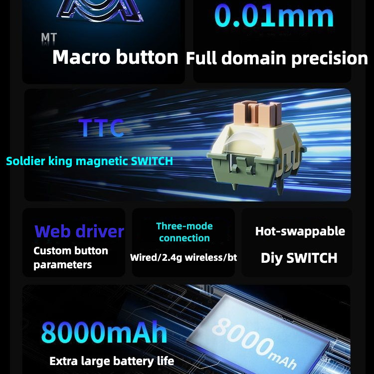 AJAZZ AK820MAX ULTRA Magnetic Switch Mechanical Keyboard Three-mode Wireless Rapid Trigger 8Khz RGB Bluetooth 2.4g Wired 8000 mAh RT0.01