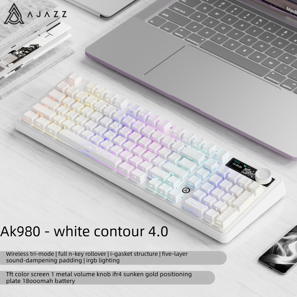 (SG STOCK)AJAZZ AK980 Wireless and Wired Mechanical Keyboards with Screen, RGB Customizable Keyboard for Gaming office