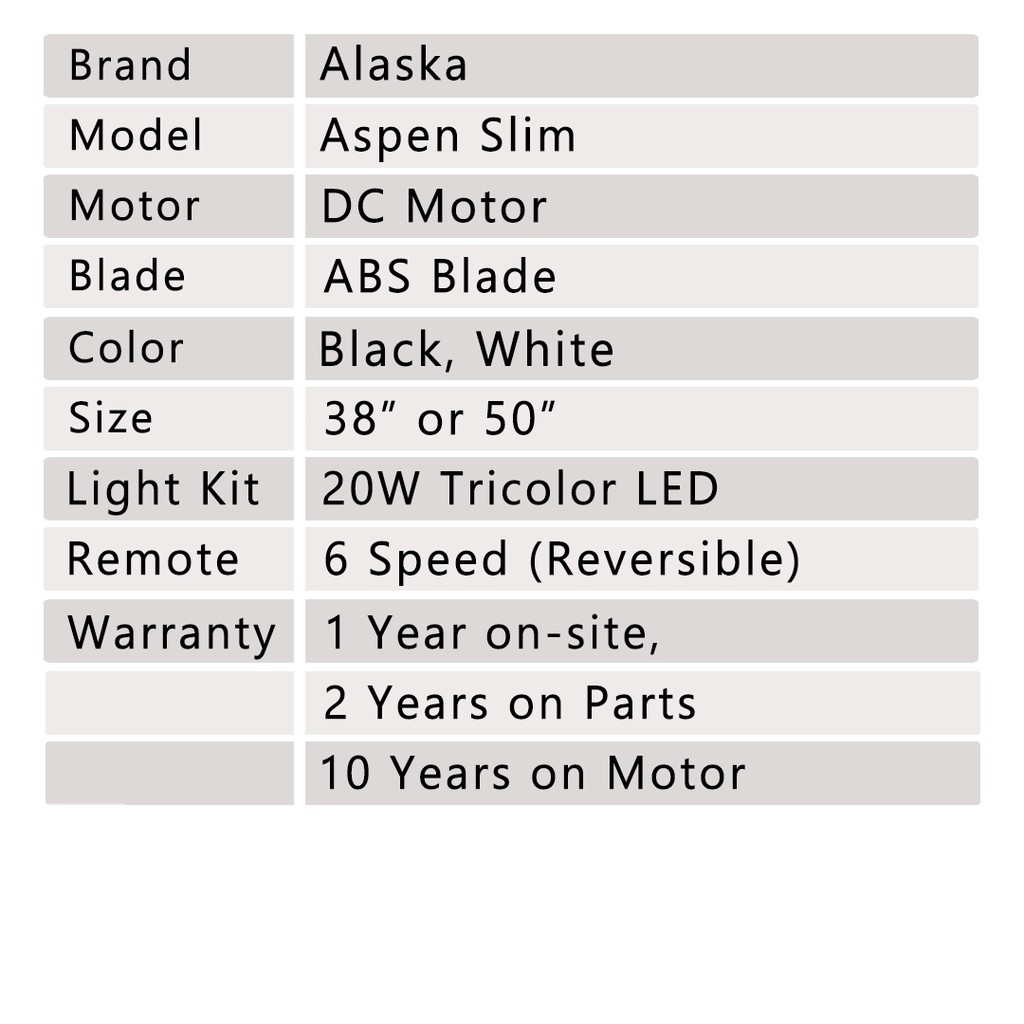 ALASKA Aspen Slim 38"50" 3 Blade DC Ceiling Fan with LED Light & Remote Control