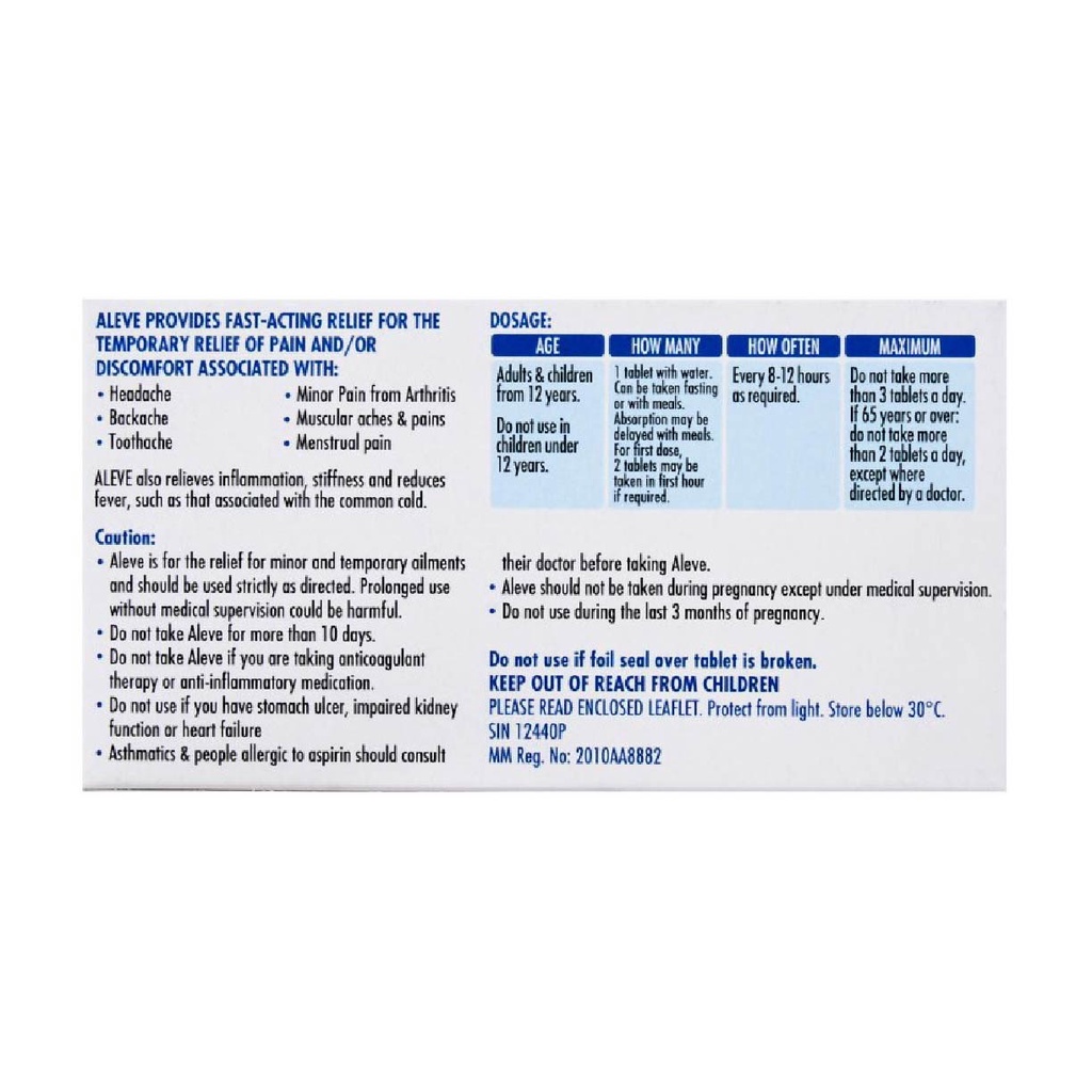 ALEVE Fast-acting Anti-Inflammatory Tablets (Relief Joint & Muscle Pain) 12s