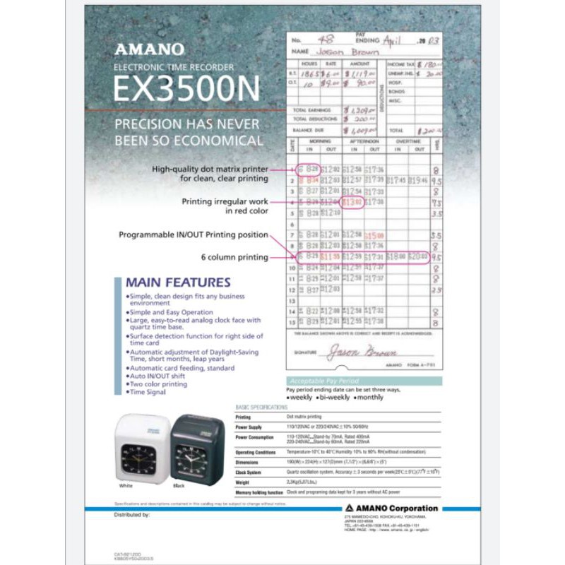 AMANO TIME RECORDER EX-3500N / EX-6000N (NEW / USED)