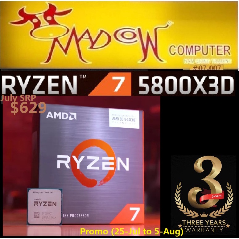 AMD Ryzen 7 5800X3D 8-core, 16-Thread, 4.5 GHz Max Boost, Desktop Processor, AMD(3Y), [Local Stock] 25July-5th Aug Prom