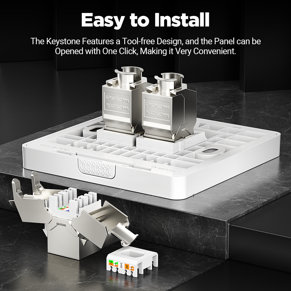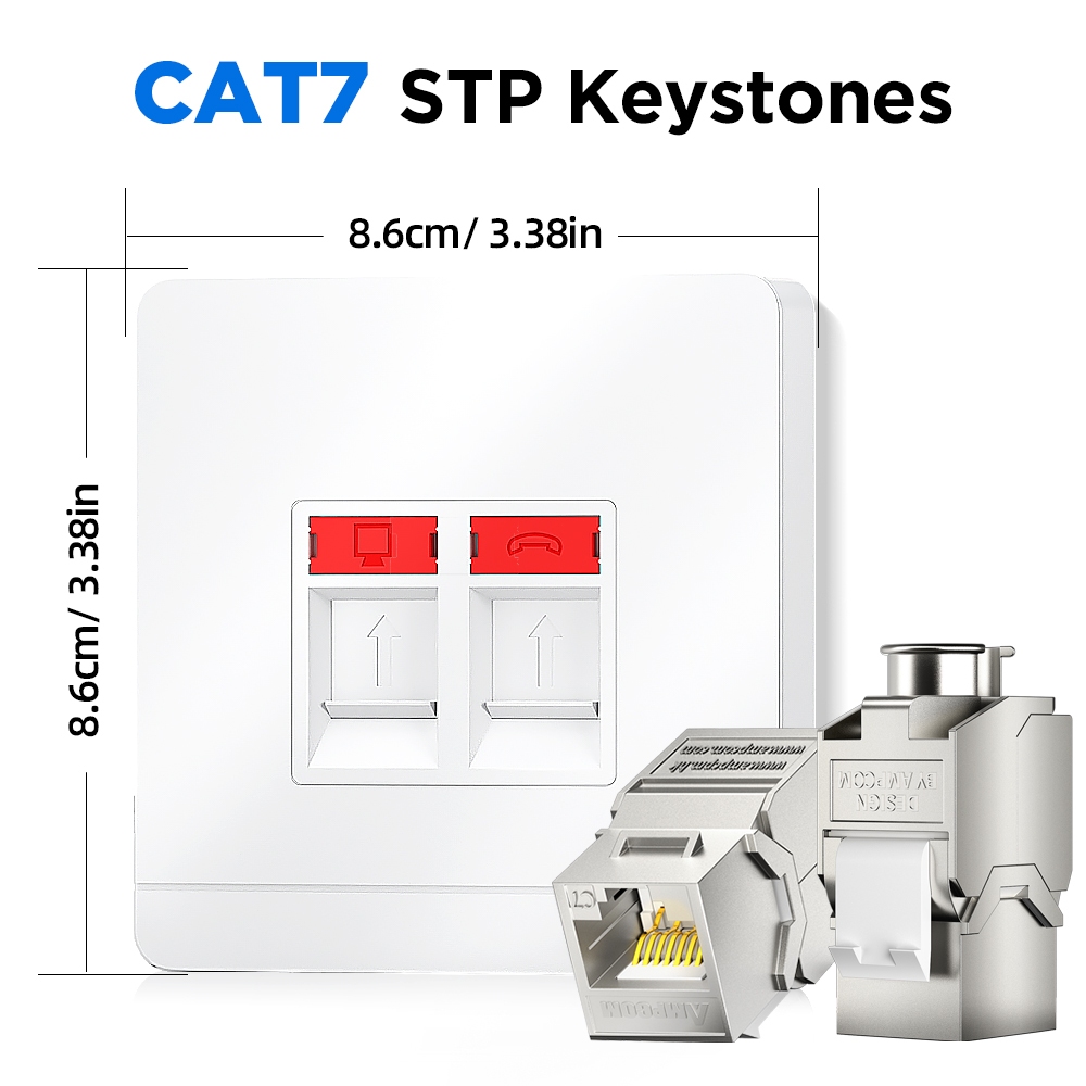 AMPCOM Panel Kit, Wall Faceplate with CAT7 10Gbps STP Keystone Jack, RJ45 Self-Locking Zinc Alloy Module With 86mm Wall Plate