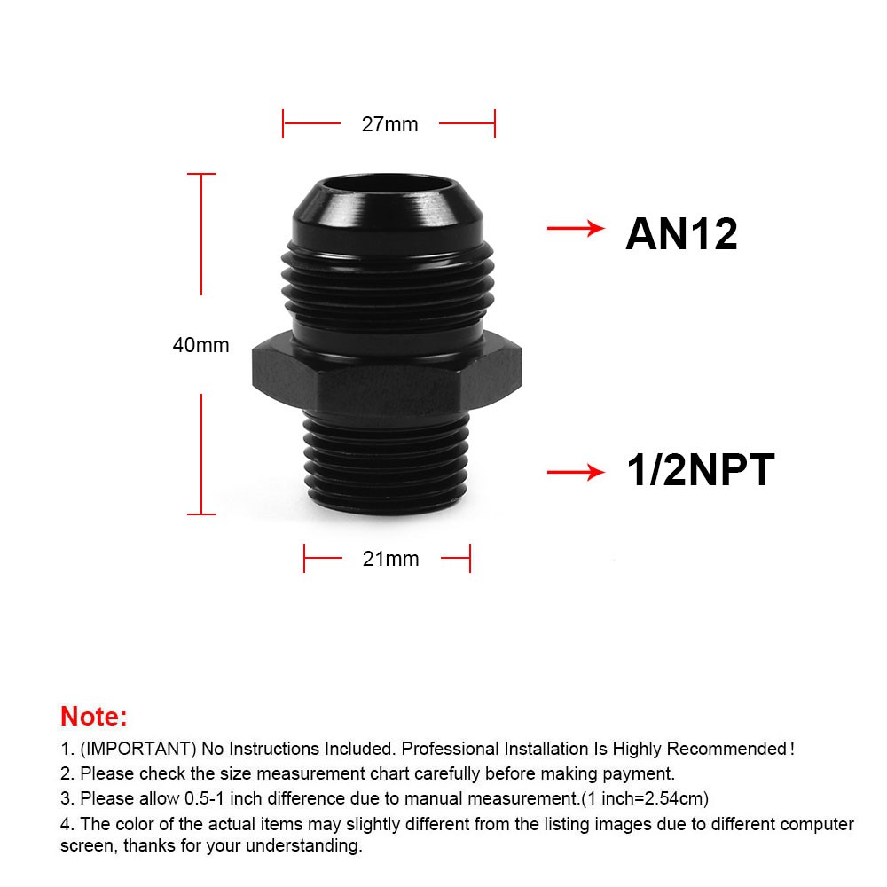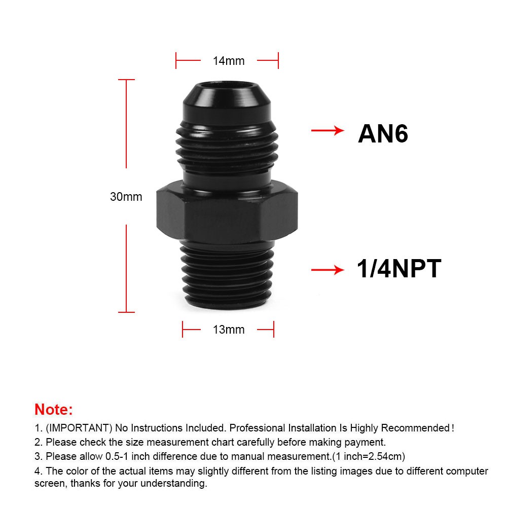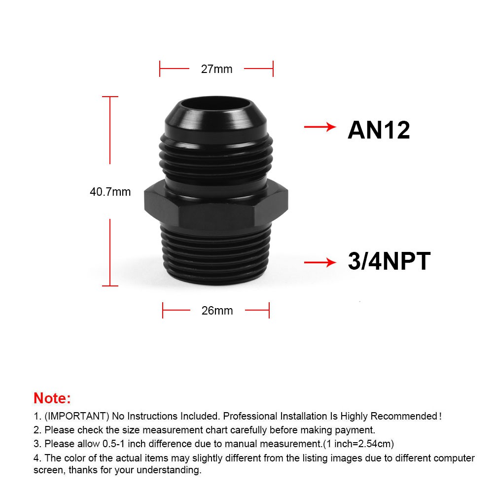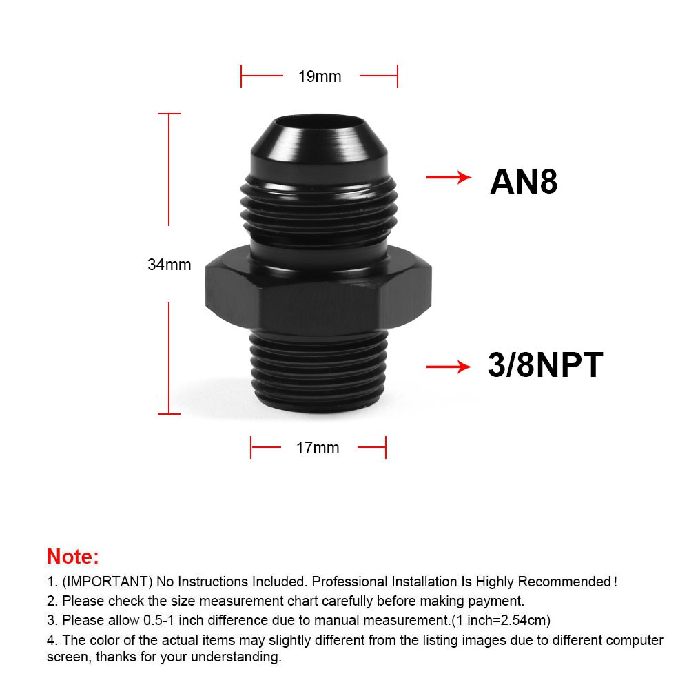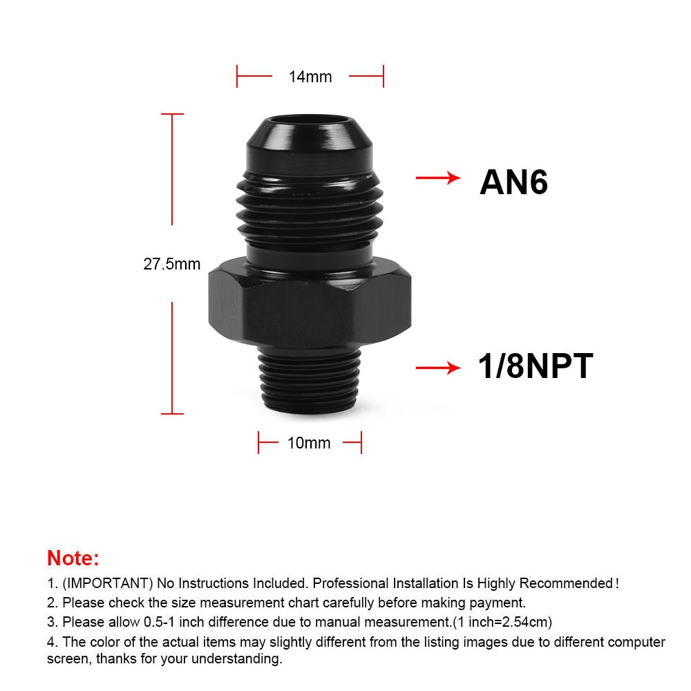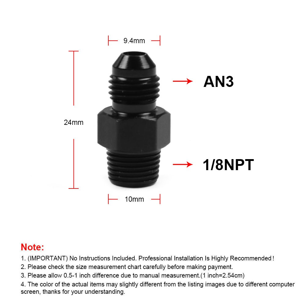 AN3 AN4 AN6 AN8 AN10 AN12 Male to 1/8NPT 1/4NPT 3/8NPT 1/2 NPT 3/4 NPT Straight Fuel Oil Air Hose Adapter Fitting Black