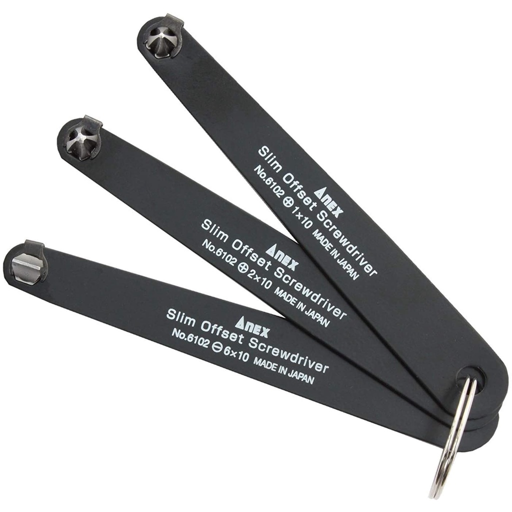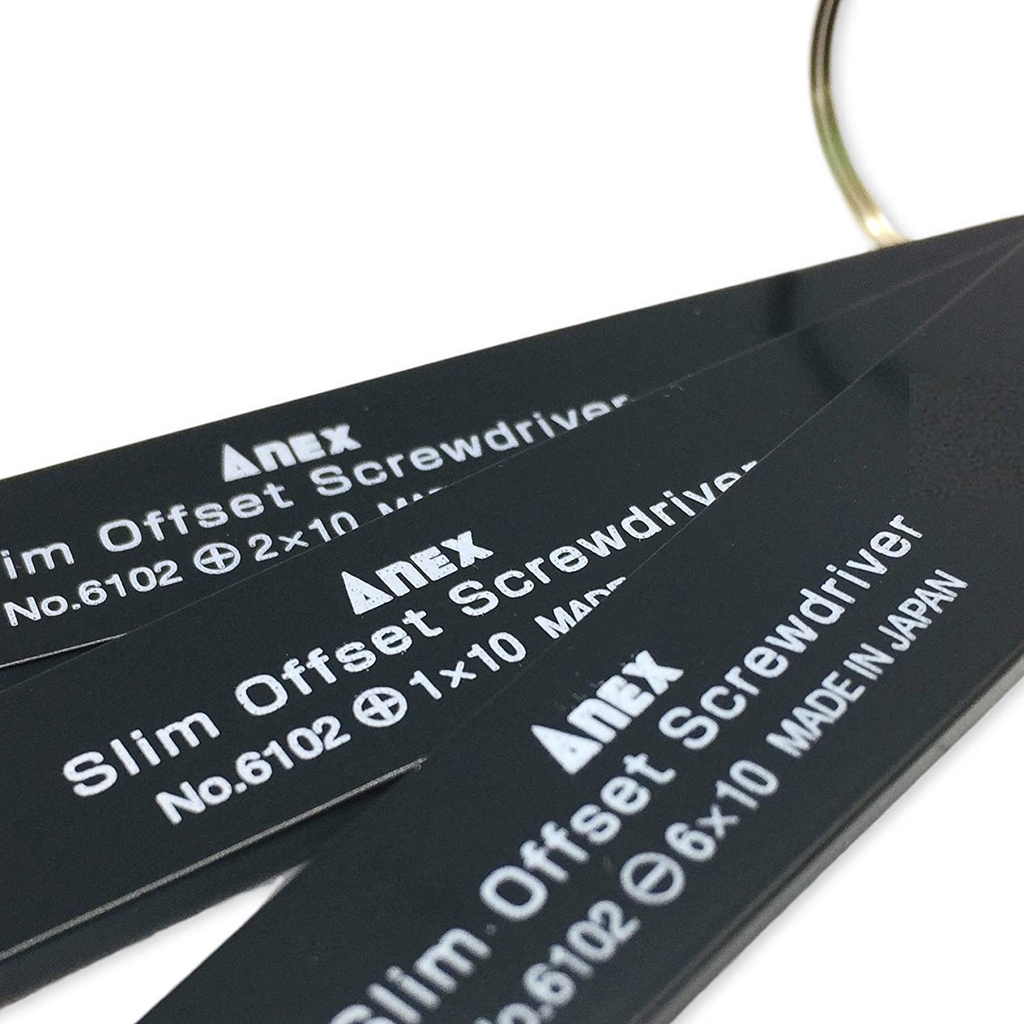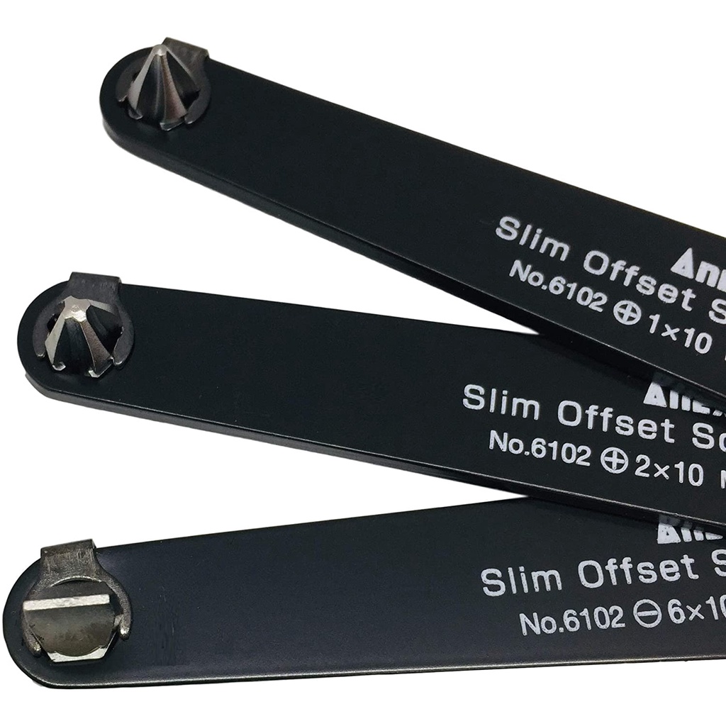 ANEX Ultra Low Profile Offset Screwdriver Set 3 Piece, 90 Degree Straight Slim Plate For Tight Area, Made in Japan, Black