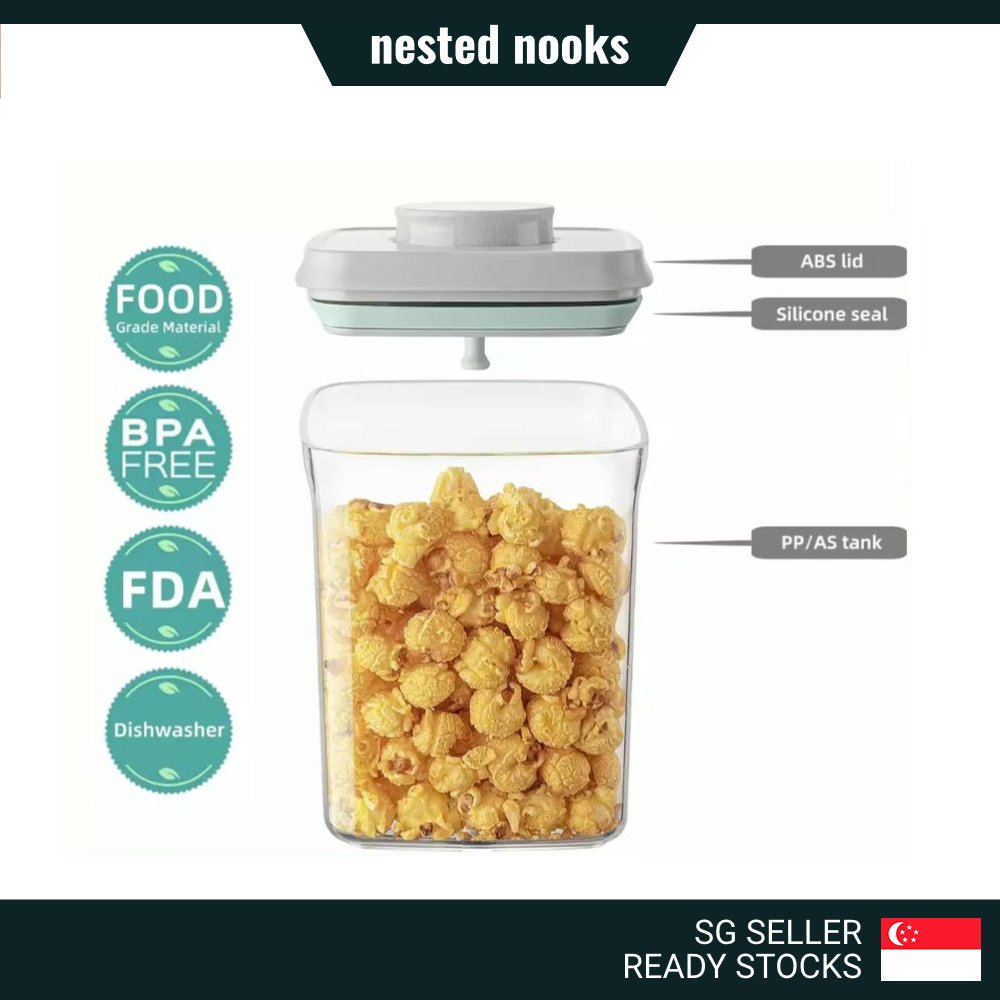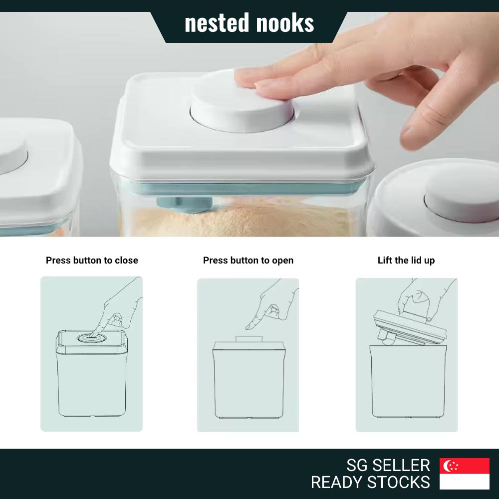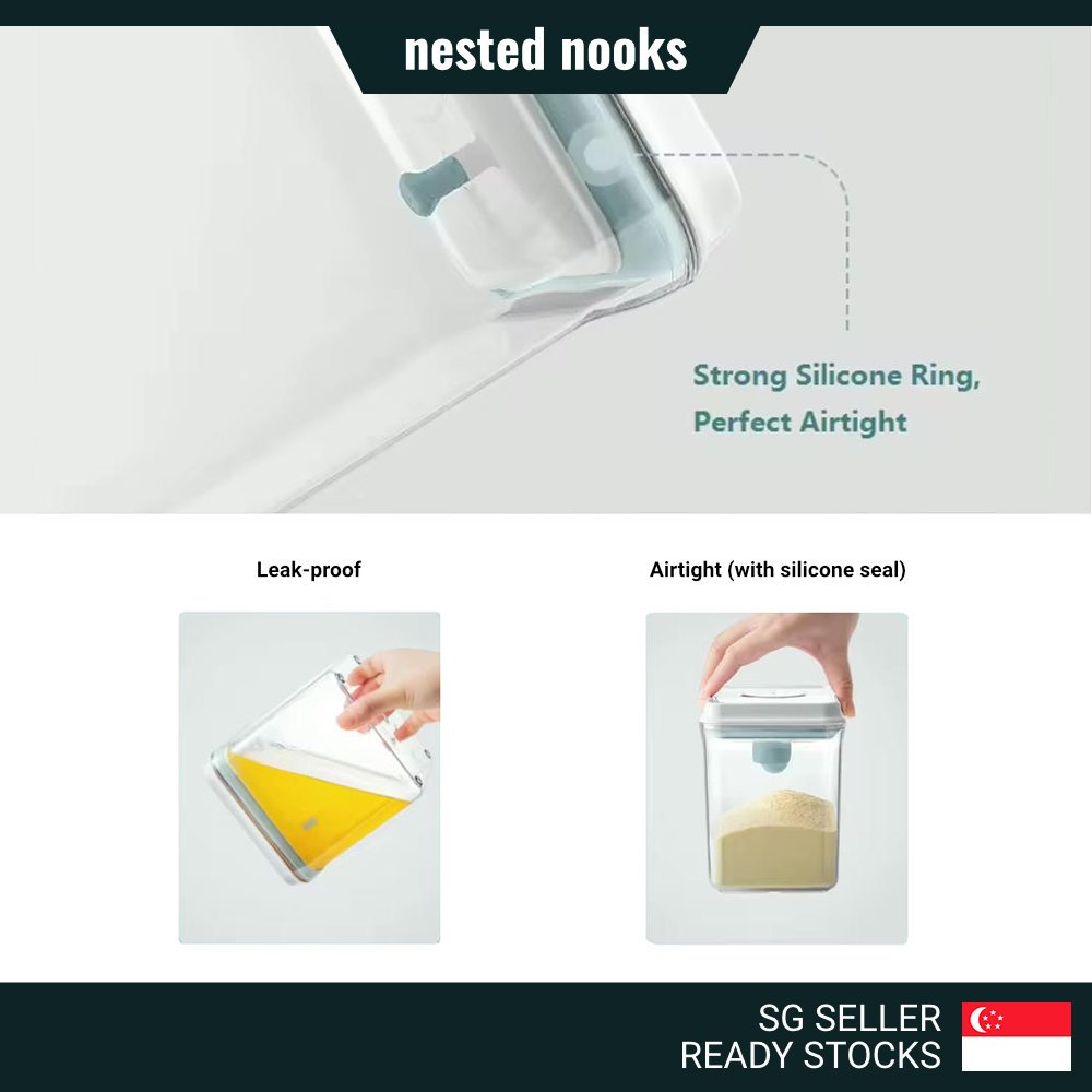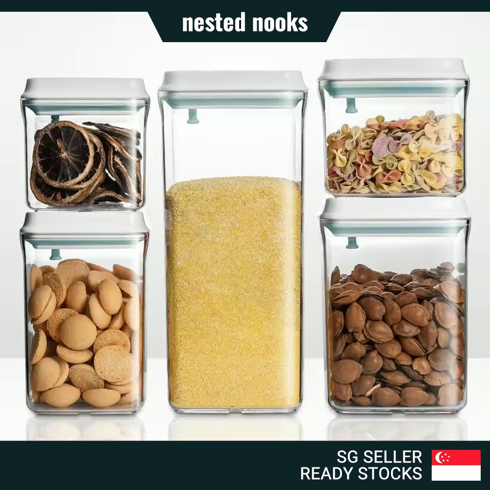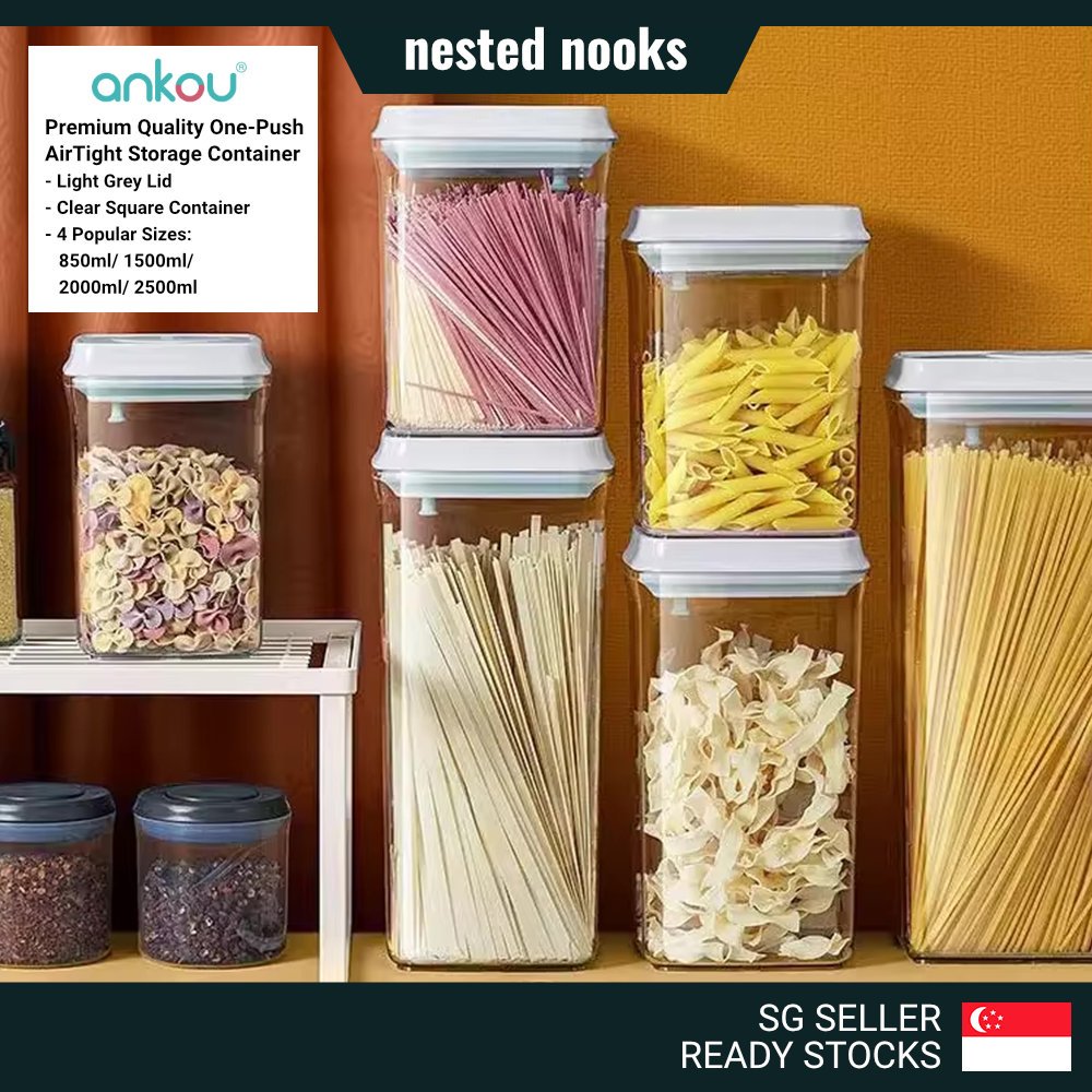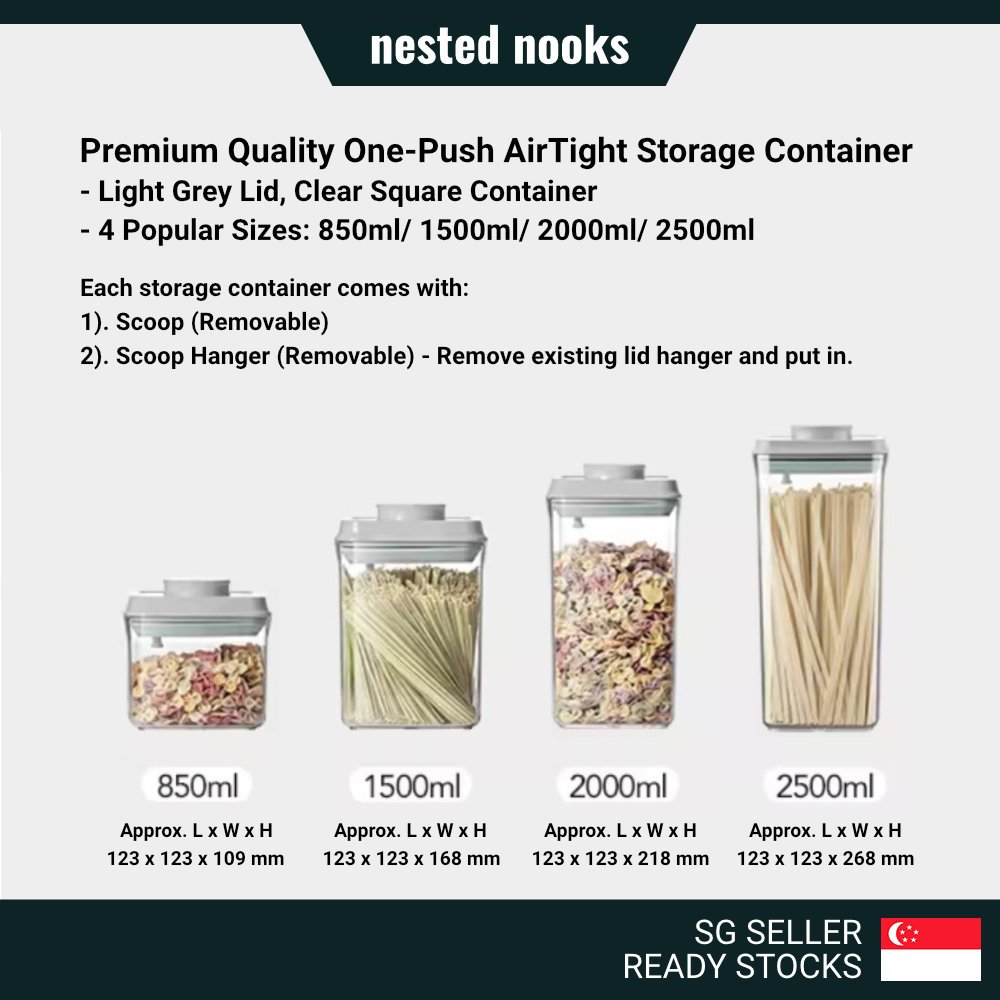 ANKOU AirTight One Push Button Square Food Storage Container Clear Stackable with Scoop (850ml/ 1500ml/ 2000ml/ 2500ml)