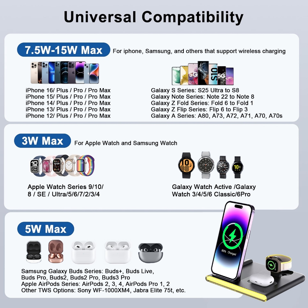 ANVORO Foldable 3 in 1 Wireless Charger Stand Fast Charging Dock for iPhone, Samsung & Apple Watch