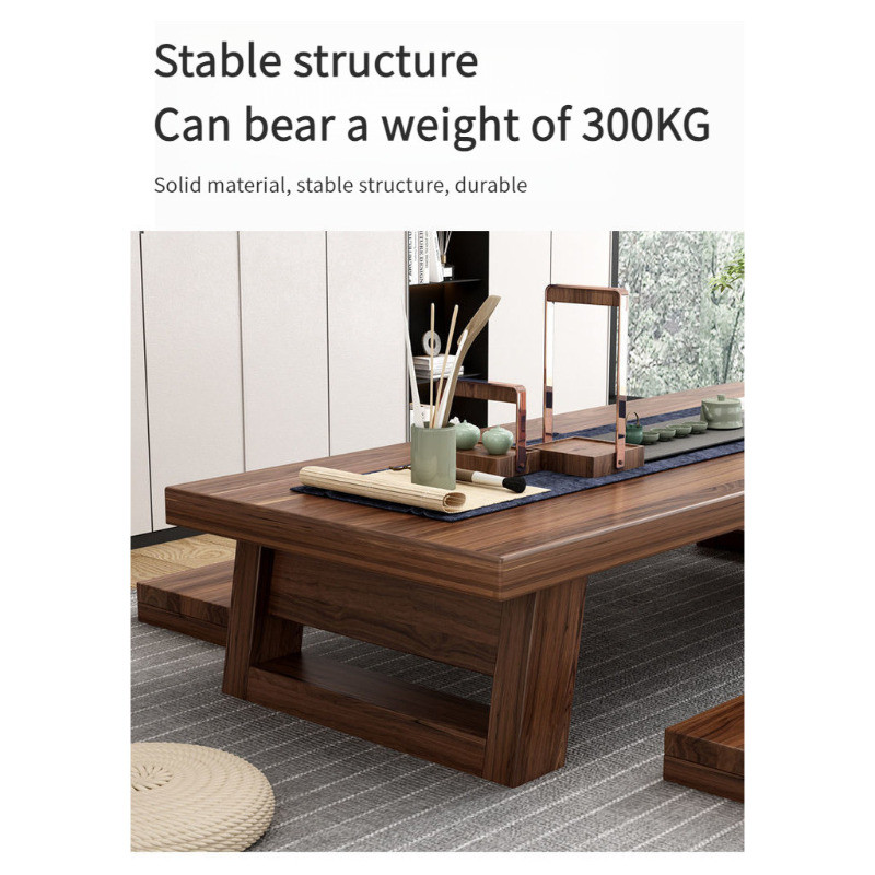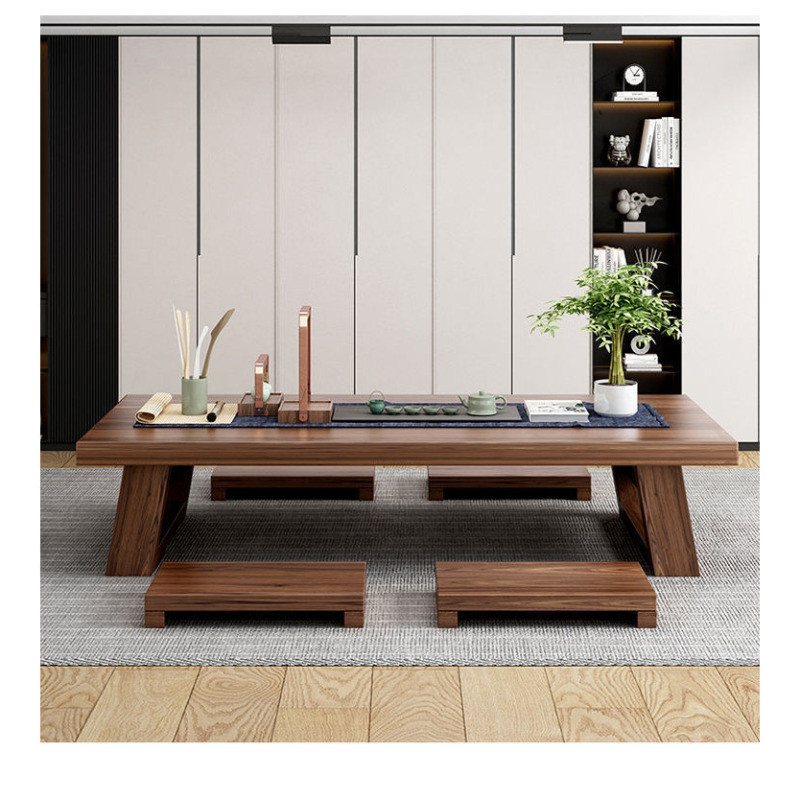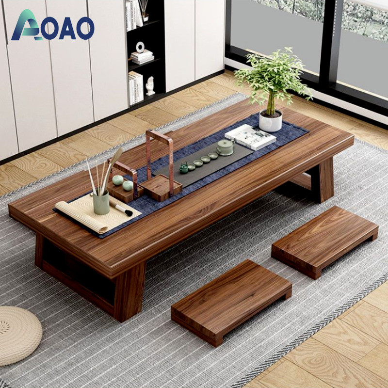 AOAO Coffee Table Pure Solid Wood Japanese Tea Table Zen Balcony Tatami Tea Table Long Low Table Simple Economical Long Table