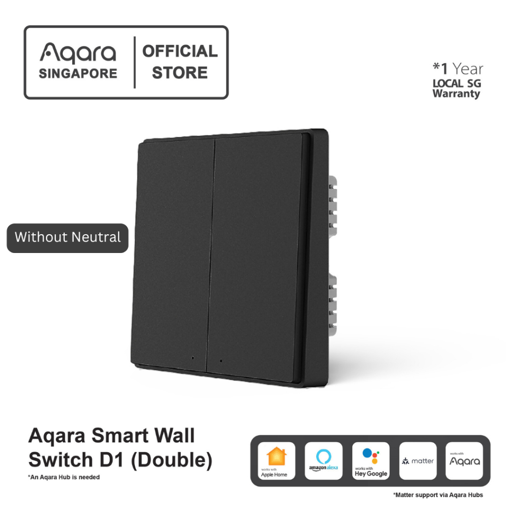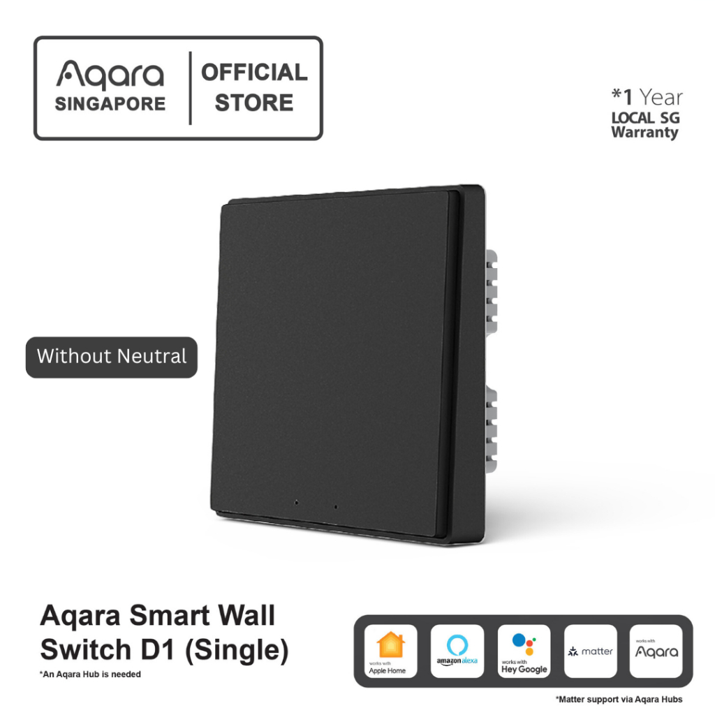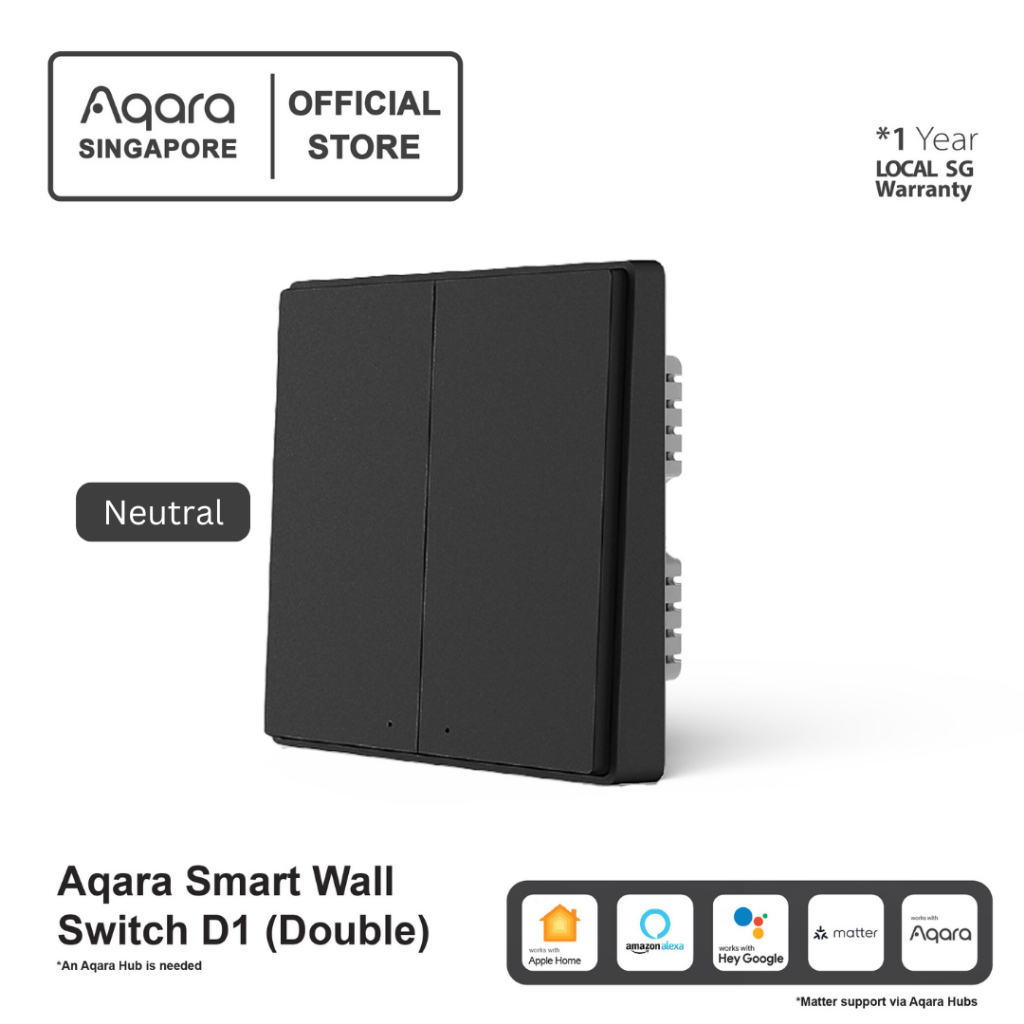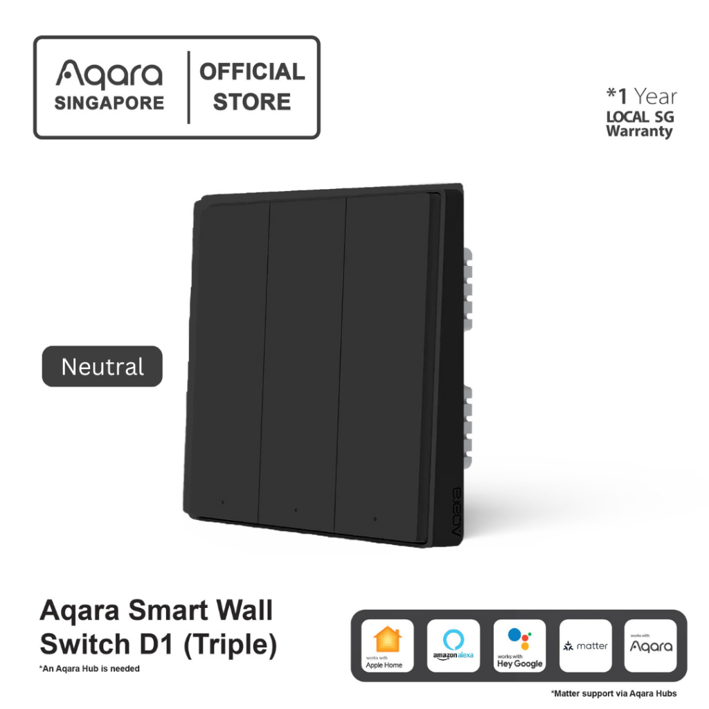 AQARA D1 Smart Wall Switch Global Version (1/2/3 Gang) ZigBee Dark Grey Color Smart Automation