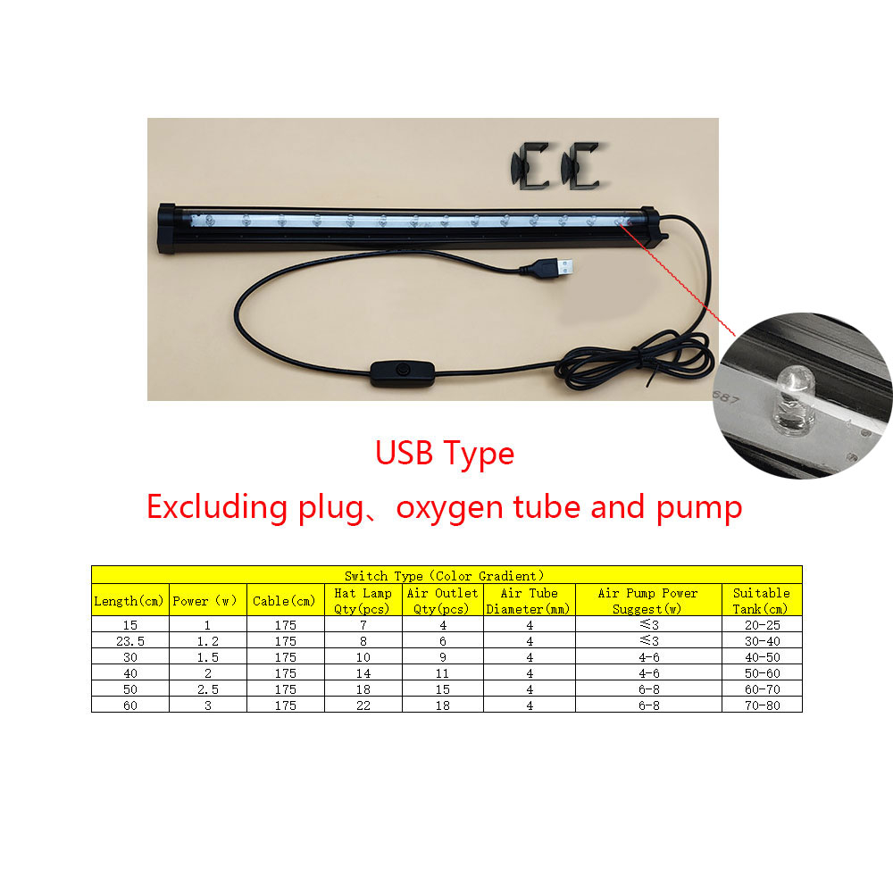 AQUARZOO 15-60cm Aquarium Remote Control Multicolor LED Light Air Bubble Stripe Underwater Automatic Color-Changing Fish Tank Colorful USB Waterproof LED Lighting