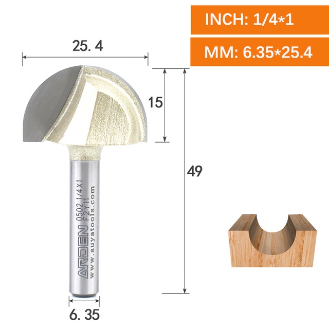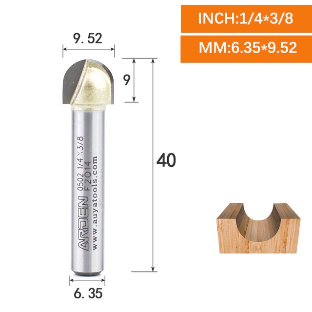 ARDEN Core Box Bit Carbide Round Bottom Groove Milling Cutter Radius Ball Nose Woodworking Router Bit Semi-circular CNC Bit