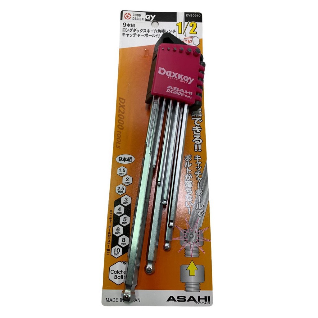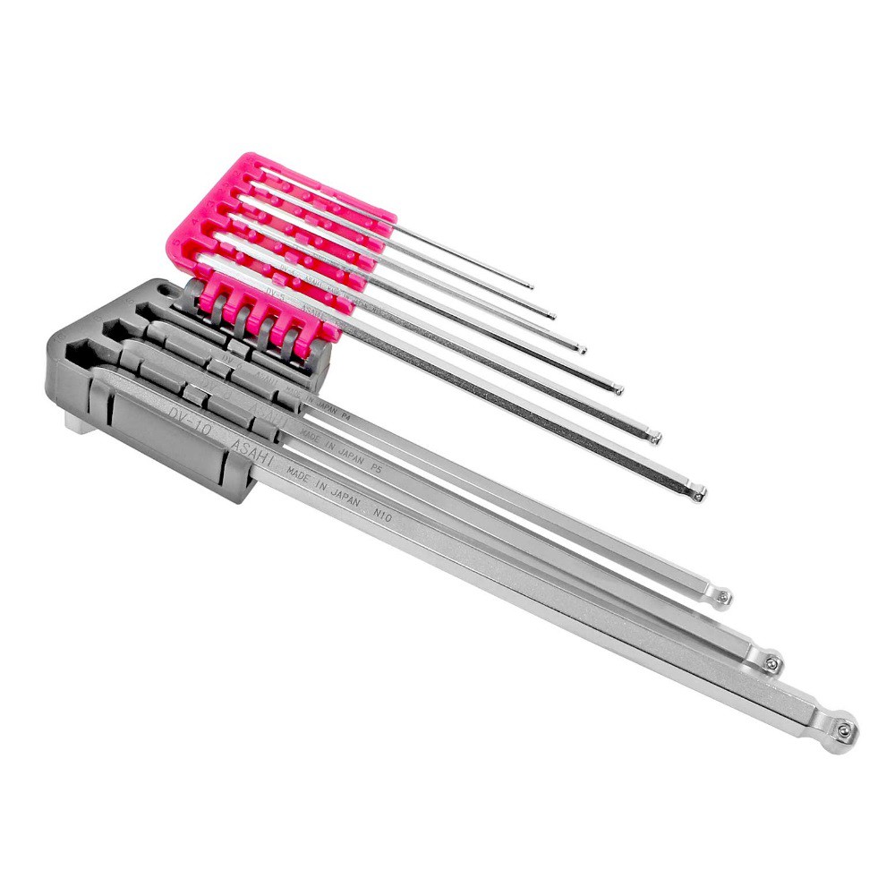 ASAHI 9pc Long Allen Wrench Key Set with Short Arm and Ball Catcher (Made in Japan)