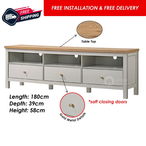 ASTAR 4FT/ 5FT/ 6FT Wooden TV console TV cabinet storage shelve TV Rack Side Cabinet (FREE INSTALL)
