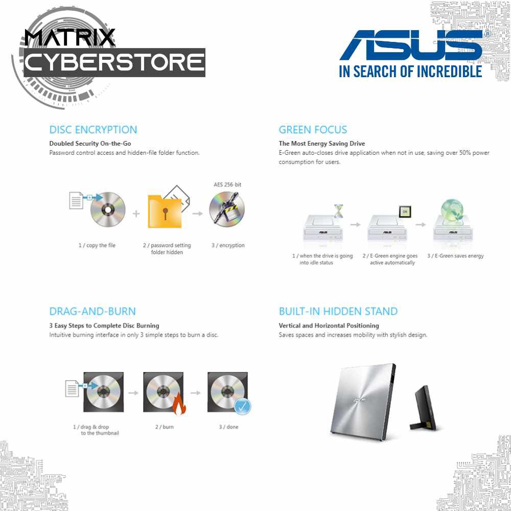 ASUS 8X Drive Slim CD/DVD-RW External DVD Writer USB 2.0.