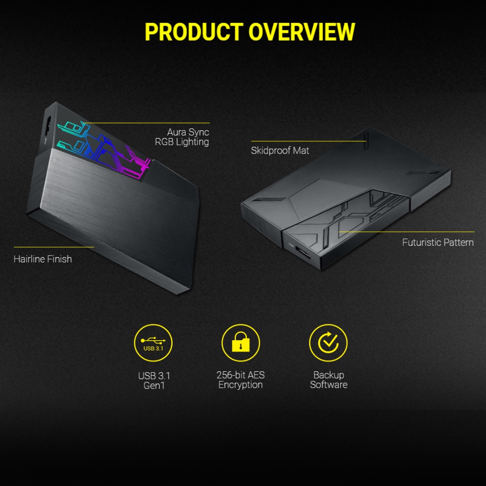 ASUS FX External Hard Drive 1TB / 2TB 2.5-inch External Hard Drive, Aura Sync RGB, USB 3.1 Gen1, 256-bit AES Encryption
