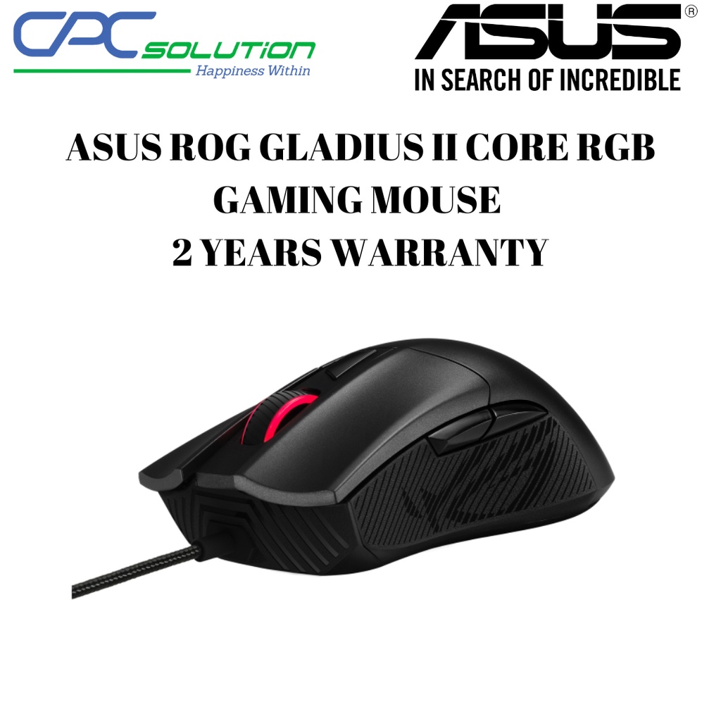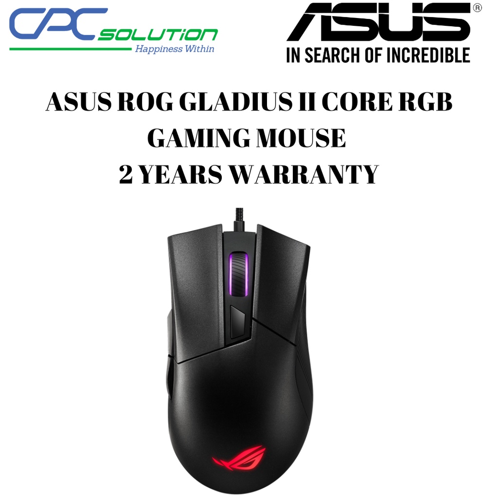 ASUS ROG GLADIUS II CORE RGB GAMING MOUSE 2 YEARS WARRANTY