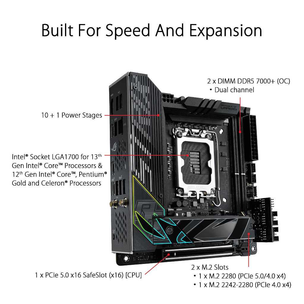 ASUS ROG STRIX Z790-I GAMING WIFI Mini-ITX Motherboard - Intel Z790 LGA 1700, DDR5, PCIe 5.0, WiFi 6E, 10+1 power stages