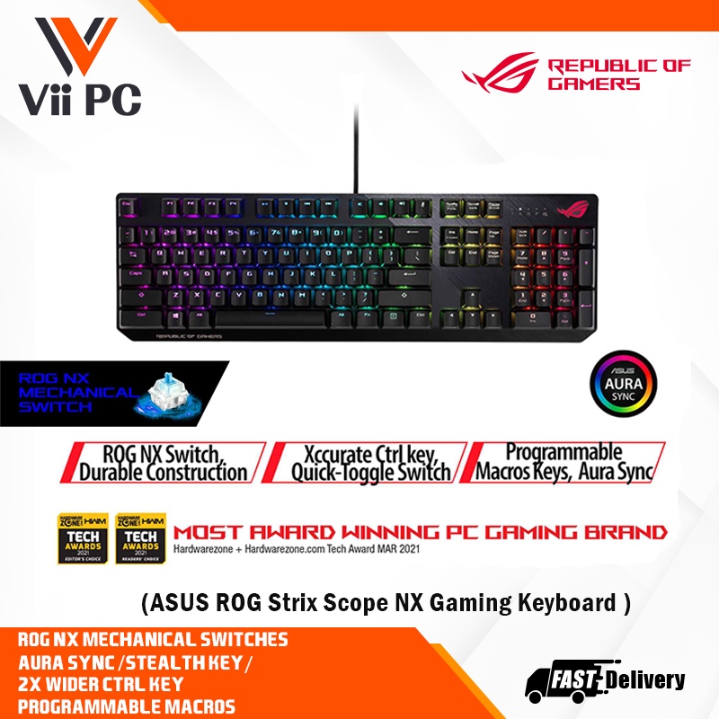 ASUS ROG Strix Scope NX Gaming Keyboard-ROG NX Switches,Aura Sync ,Stealth Key,2X wider Ctrl key,programmable macros