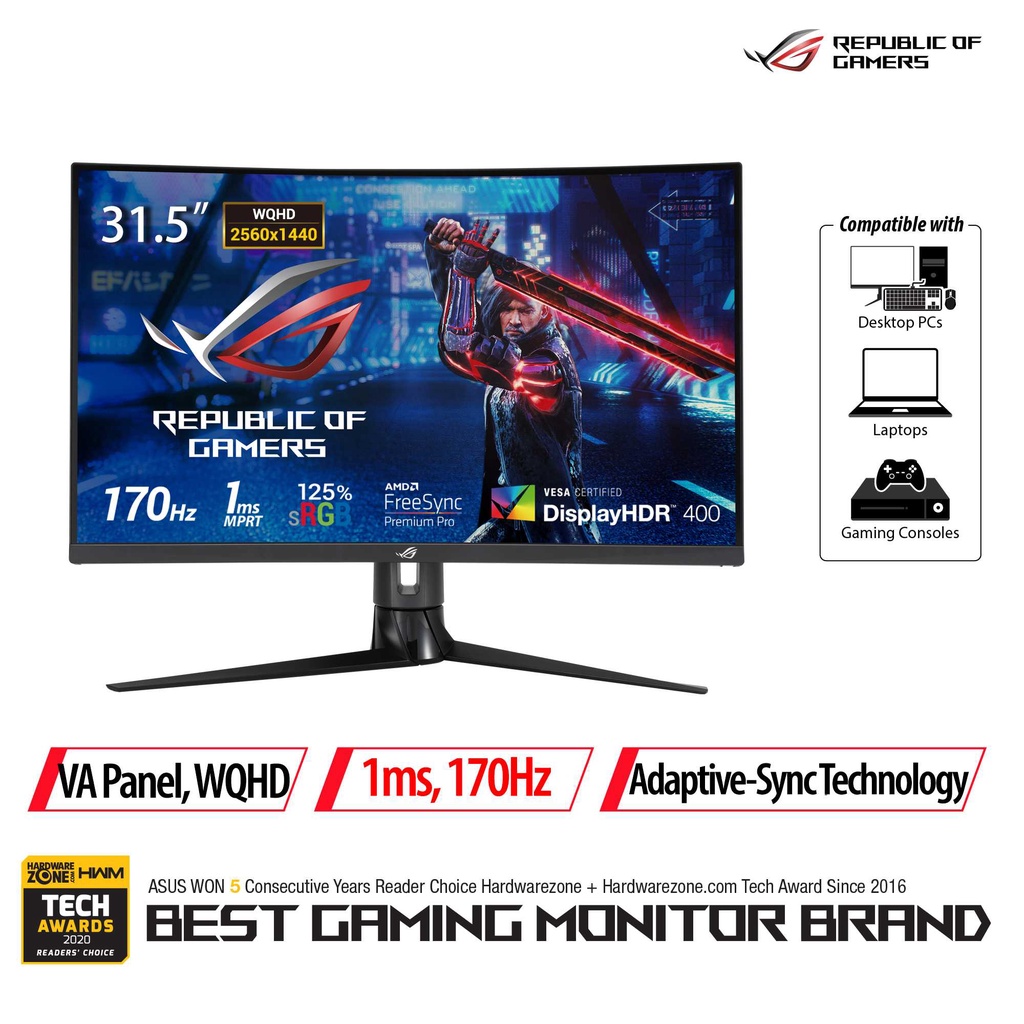 ASUS ROG Strix XG32VC Gaming Monitor, 31.5 inch WQHD (2560 x 1440), 170Hz, 1ms MPRT, FreeSync Premium Pro