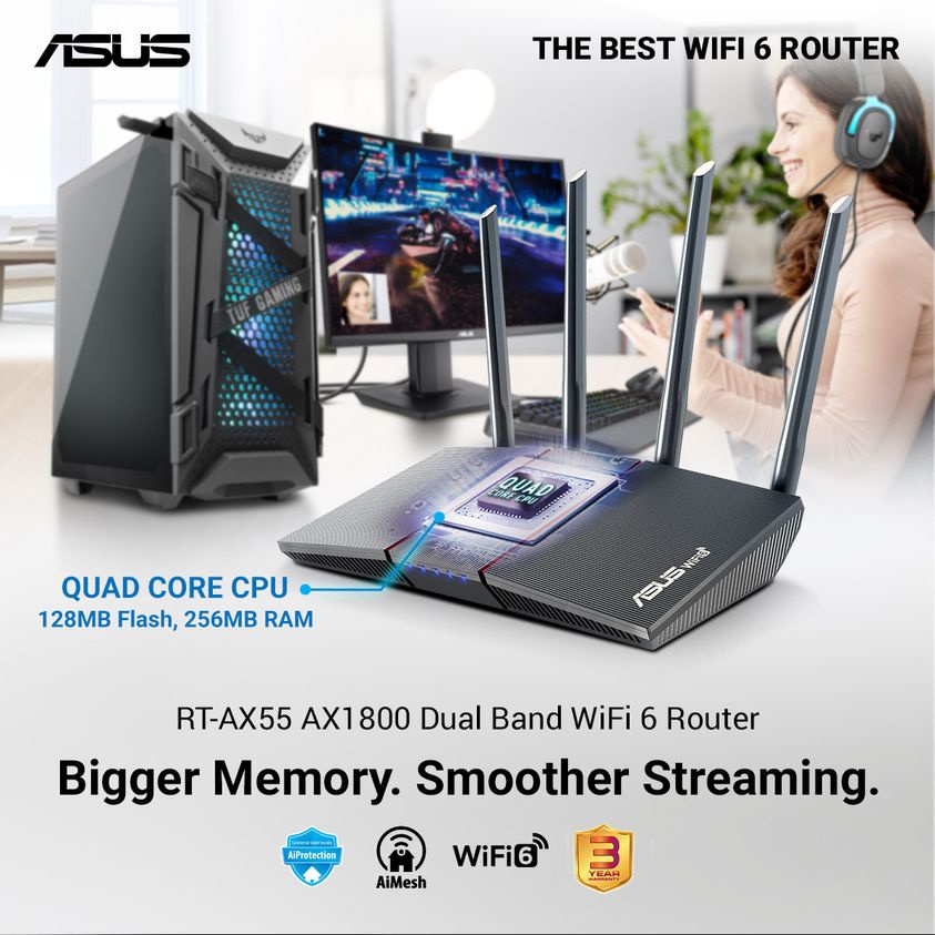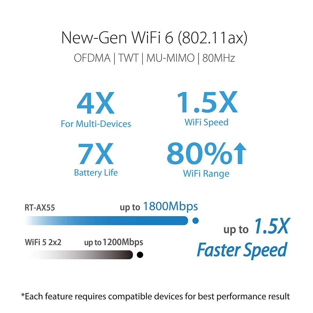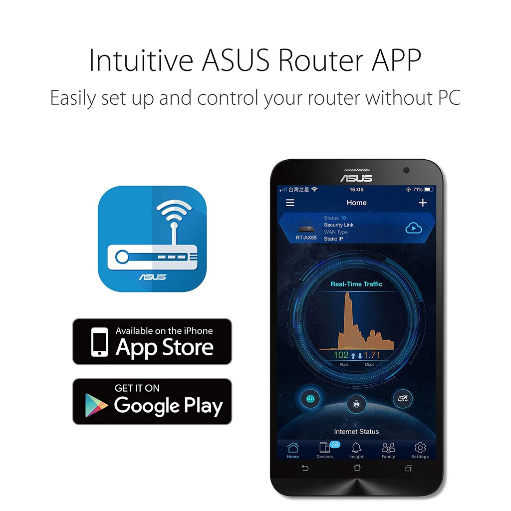 ASUS RT-AX55 WiFi 6 Router Wireless AX1800 Ai Mesh High Power Strong Signal, Extendable Router