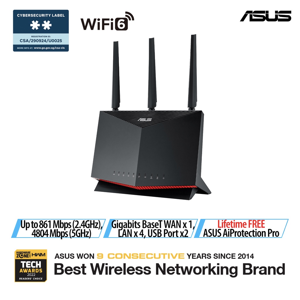 ASUS RT-AX86S AX5700 Dual Band WiFi 6 Gaming Router - PS5 compatible, Mobile Game Mode [Last Unit]