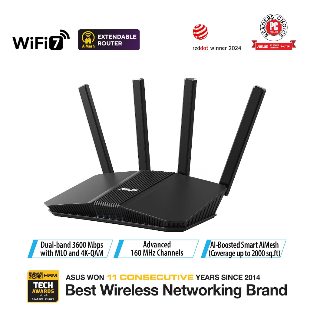 ASUS RT-BE58U Dual-band WiFi 7 (802.11be) Smart AiMesh Extendable Router, 3600 Mbps, 2.5G port, Parental Controls, VPN.