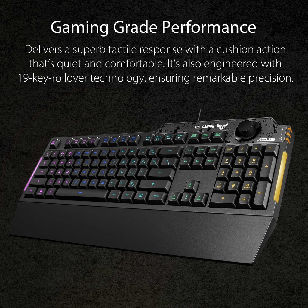 ASUS TUF Gaming K1 RGB keyboard with dedicated volume knob, spill-resistance, side light bar and Armoury Crate