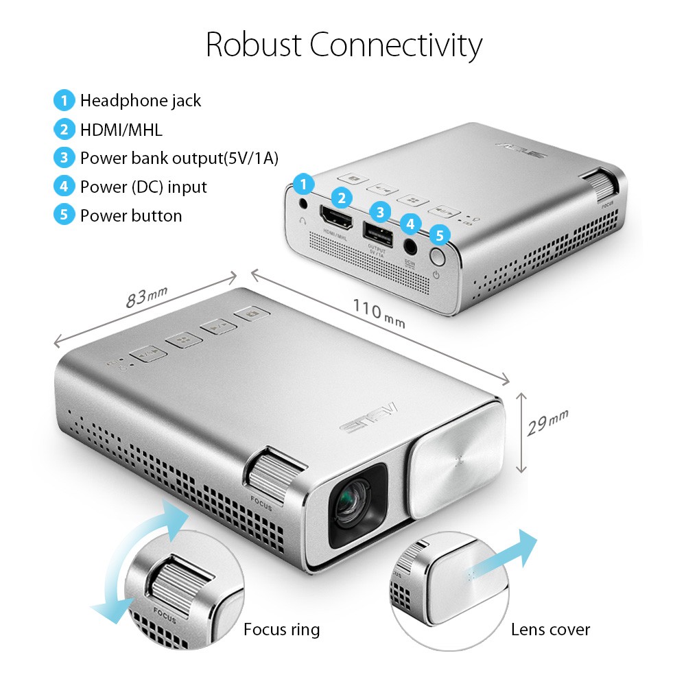 ASUS ZenBeam E1 Pocket LED Projector - 150 Lumens, Built-in 6000mAh Battery, Up to 5hr Projection
