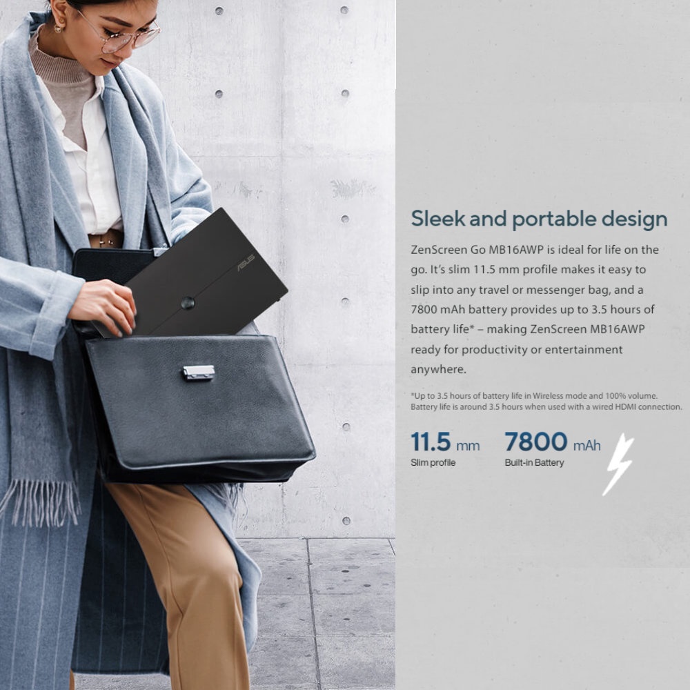 ASUS ZenScreen Go MB16AWP Wireless Portable Monitor- 15.6", IPS, USB Type-C, mini HDMI, Built-in battery, WL mirroring