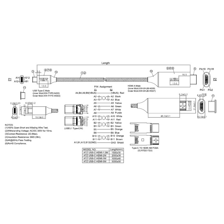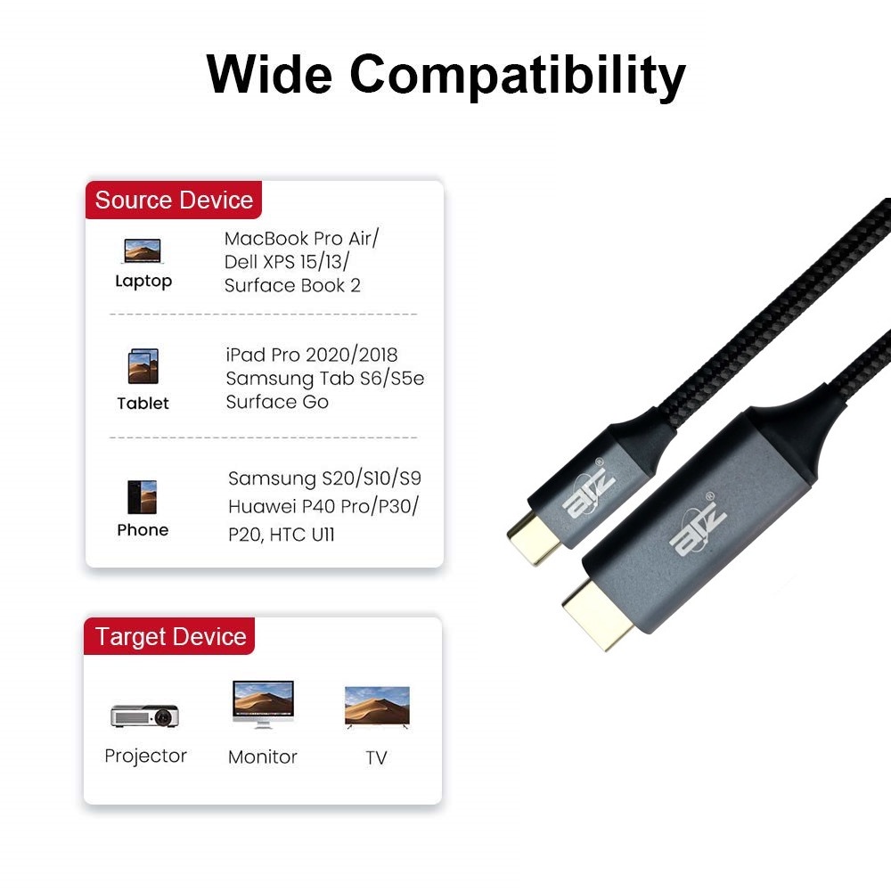 ATZ (1.5m to 5m) USB Type-C to HDMI CABLE 4K 60Hz, USB C to Hdmi Cable, USB Thunderbolt Cable