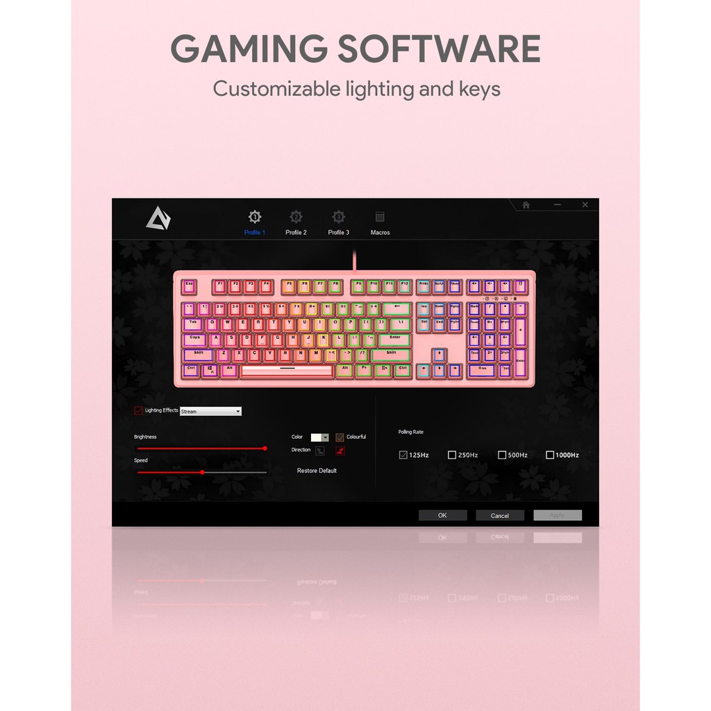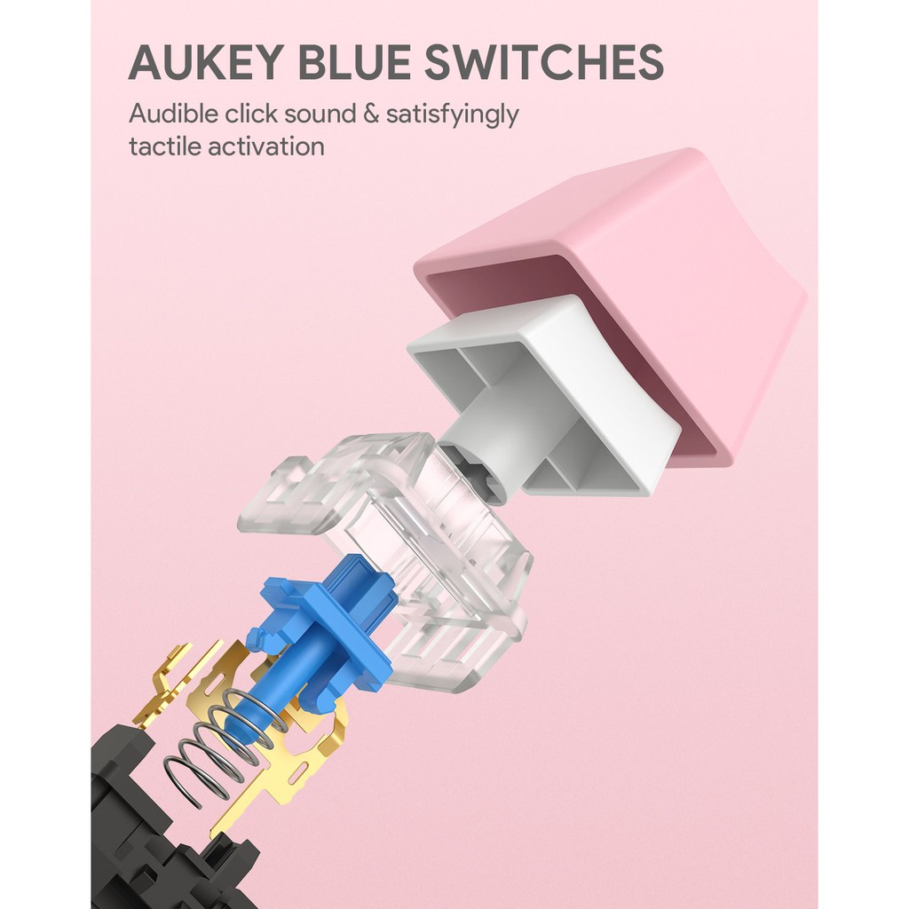 AUKEY KM-G15 Pink Mechanical Blue Switch Gaming Keyboard (18 Months Warranty)