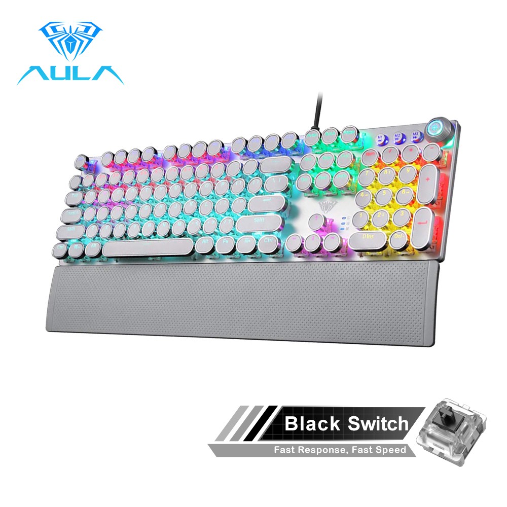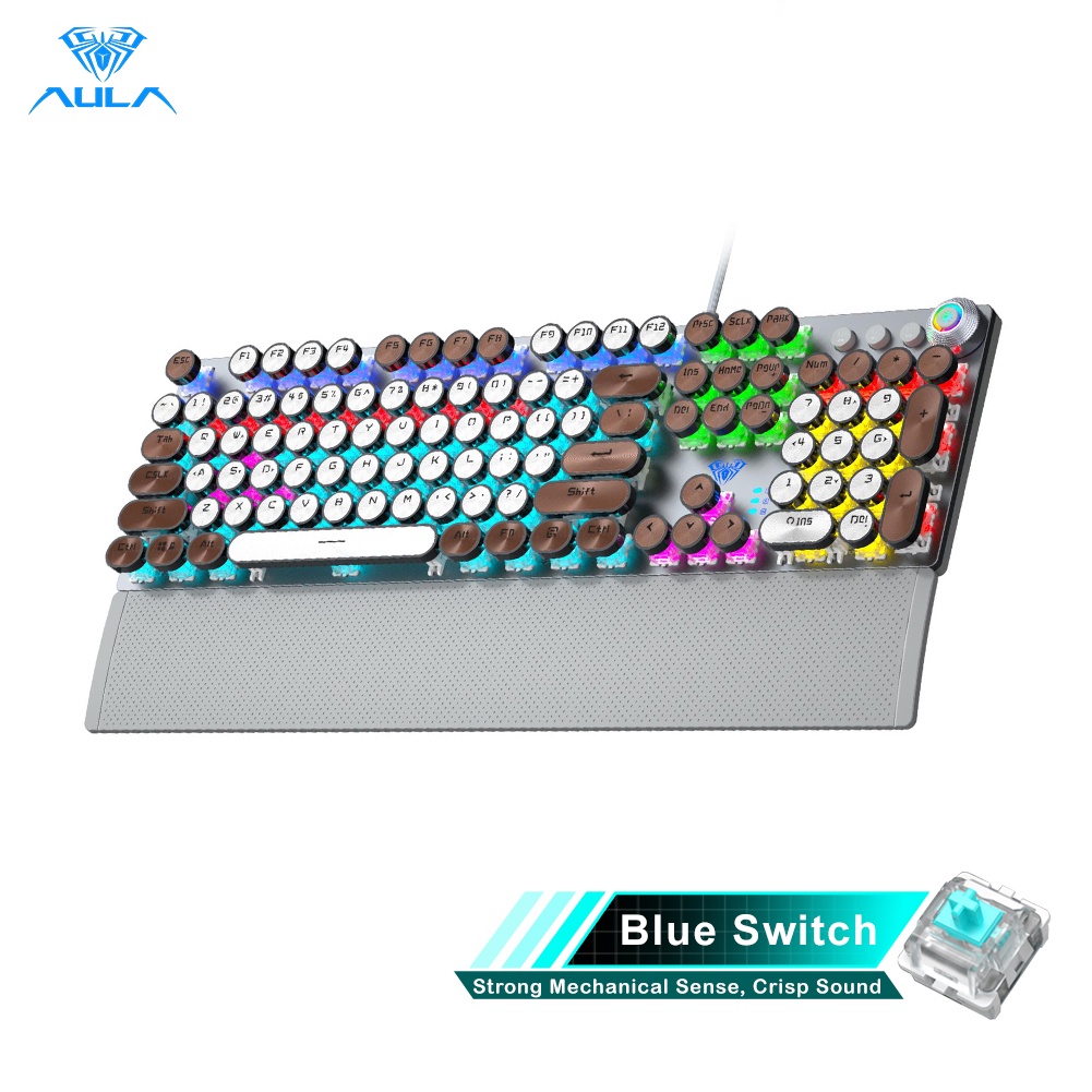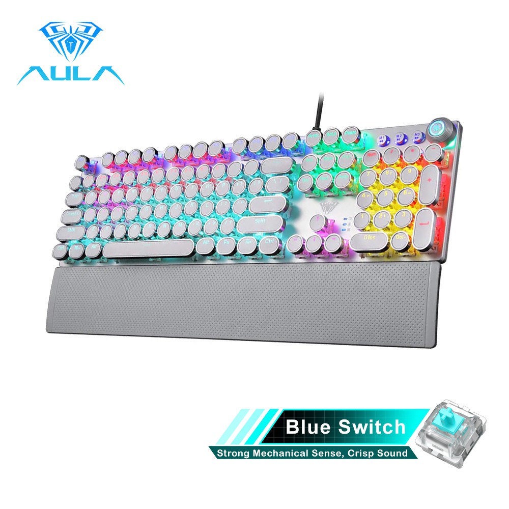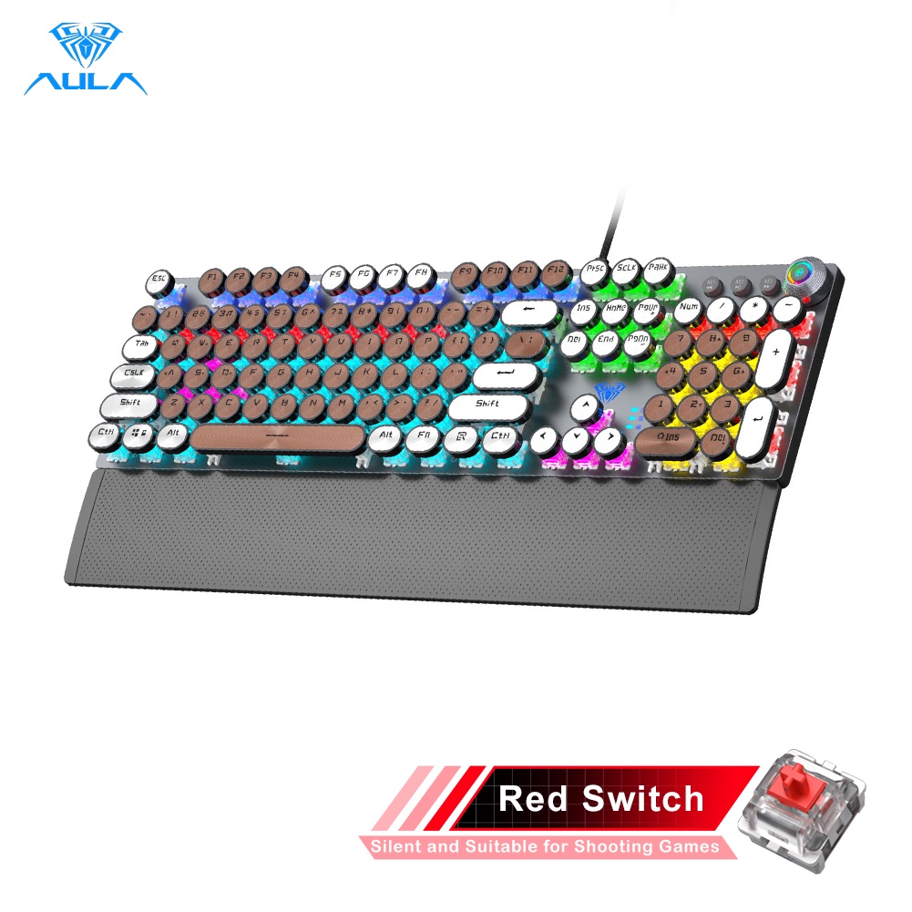 AULA F2088WPK Mechanical Gaming Keyboard Multimedia Knob Marco Programming LED Backlit with Detachable wrist rest for Computer