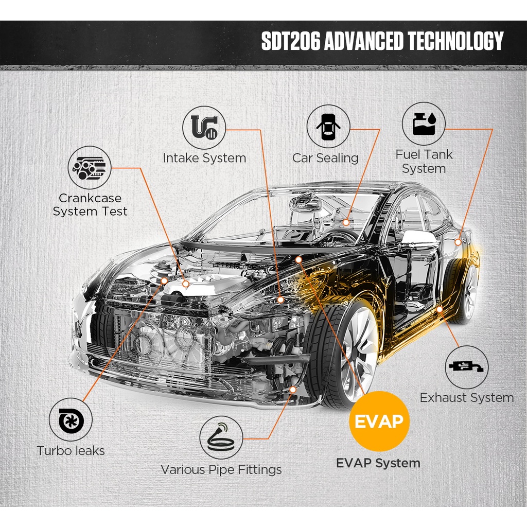 AUTOOL SDT206 New Model Car EVAP System Leak Testing Machine Leak Detector Air Cond 12V Automotive Fuel Pipe System Leak Tester Smoke Detector Pipe Leak Tester