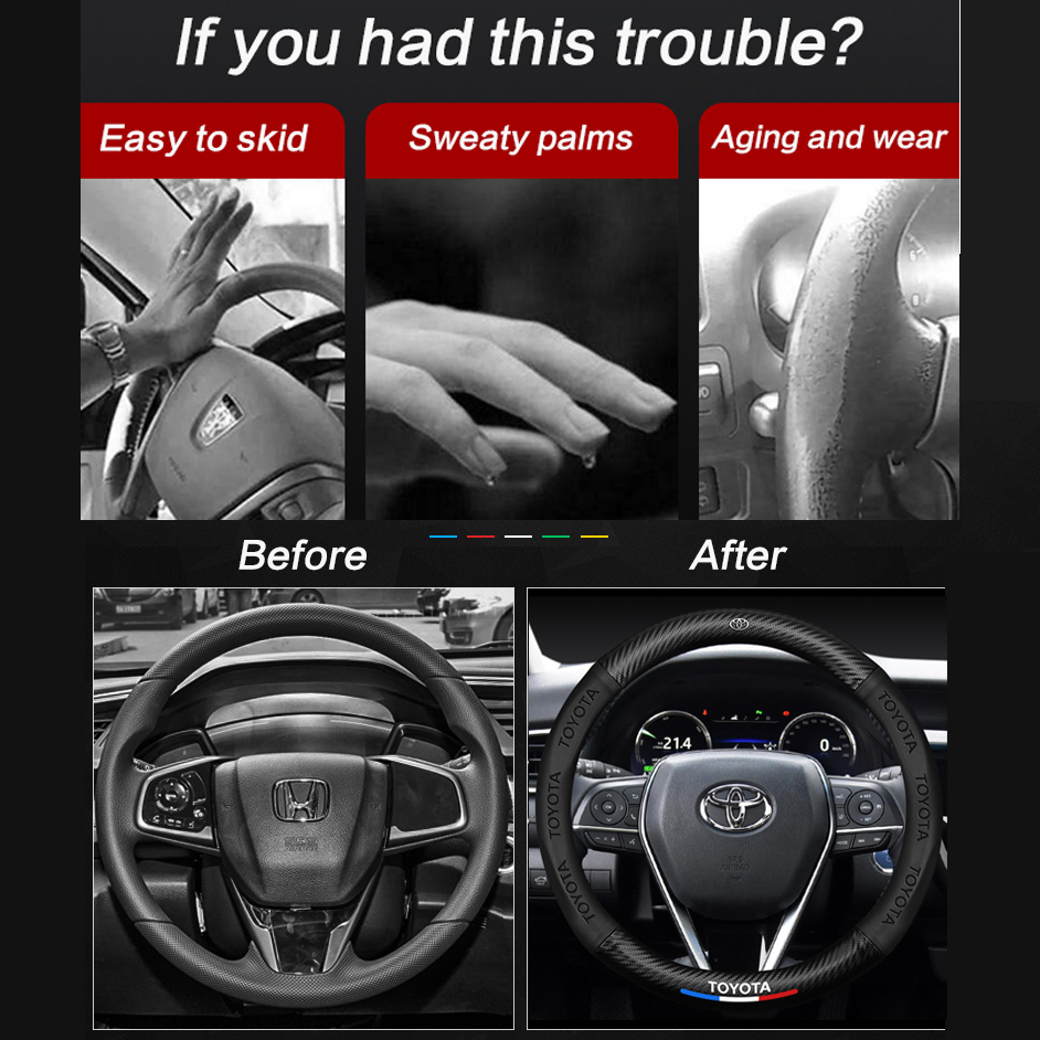 AUTOP Carbon Fiber Leather 3D Printed Car Steering Wheel Cover Anti-Skid And Wear Resistant Suitable For Steering Wheel With Diameter 36 37 38CM Toyota Honda BMW ETC.