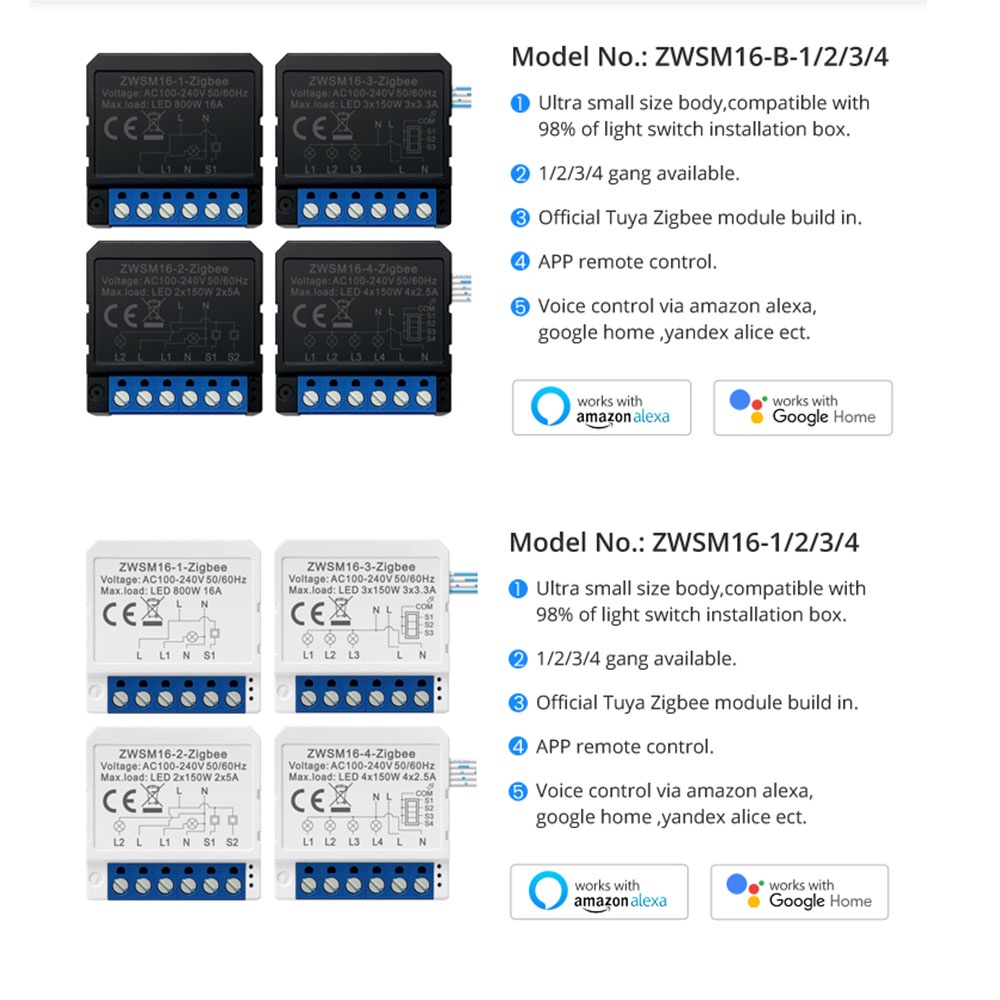 AVATTO Tuya Zigbee Switch Module with 1/2/3/4 gang Dual Way Control Neutral line required Smart Life Smart Home Interruptor Work for Alexa Google home
