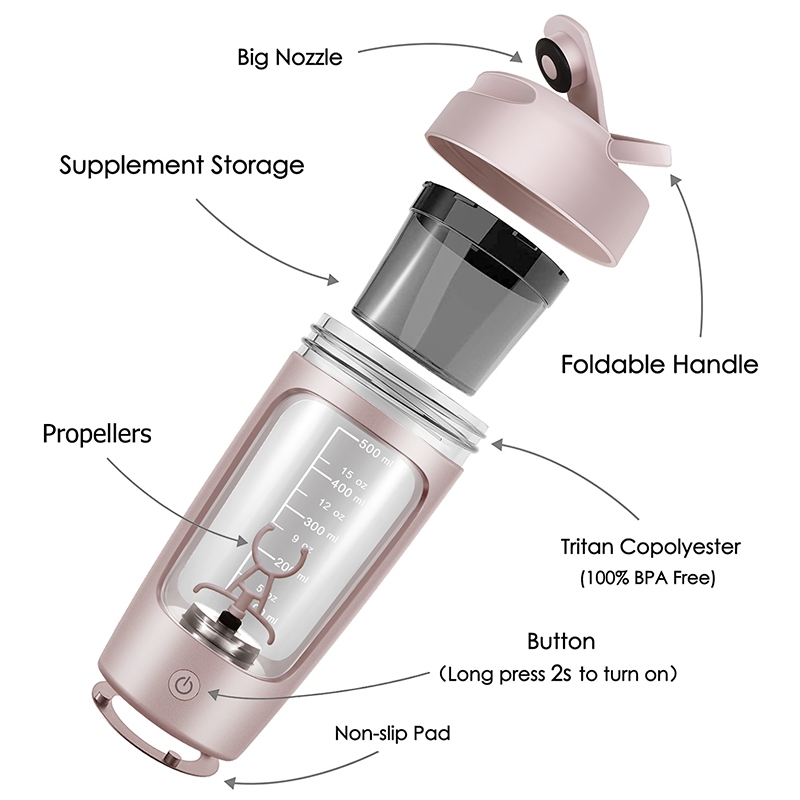 【2nd-Generation】Electric Blender Bottle Shaker Cup Automatic Blender Type C Rechargeable Milkshake Sports Accompanying Protein Powder Fitness Water Tritan