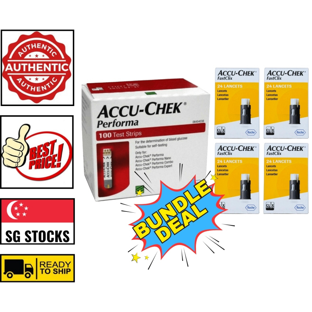 Accu Chek Performa 100s + Lancet 96's Test Strips Blood Glucose Sugar Test Kit Diabetes