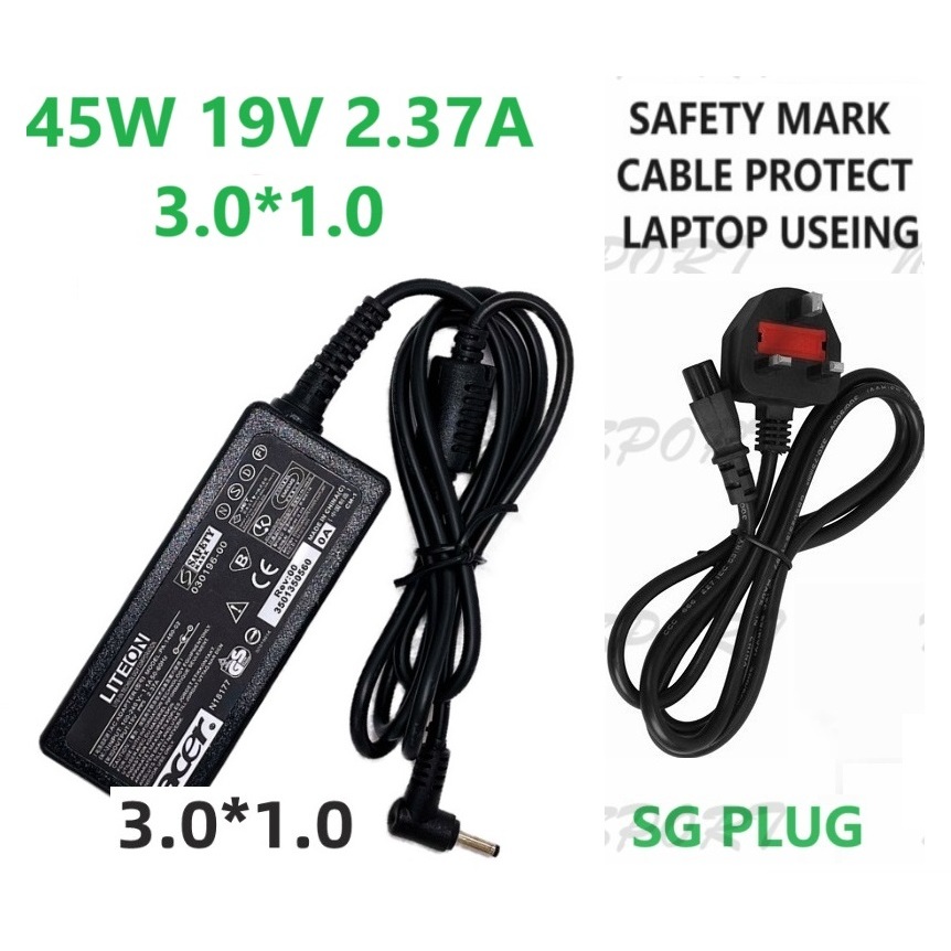 Acer 65W 19V 3.42A 3.0*1.0mm and 45W 19V 2.37A 3.0*1.0mm Uk 3Pin cable Adapter Laptop Charger for Acer Aspire