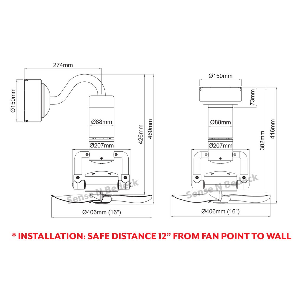 Acorn DC-360 Wall/Corner Mounted DC Fan with 360-Degree Oscillation