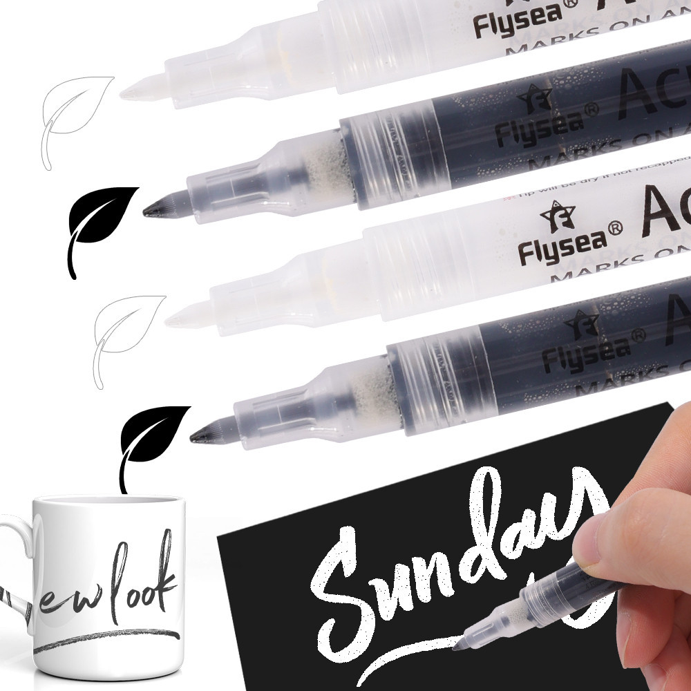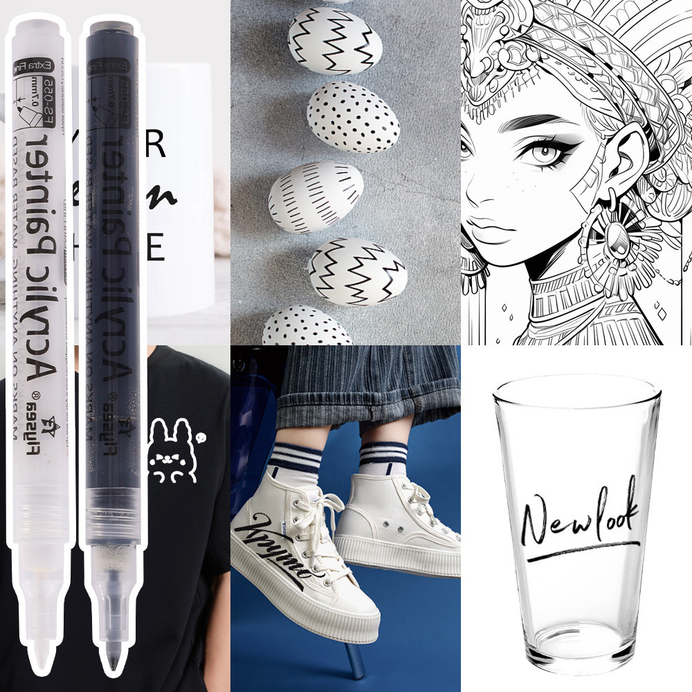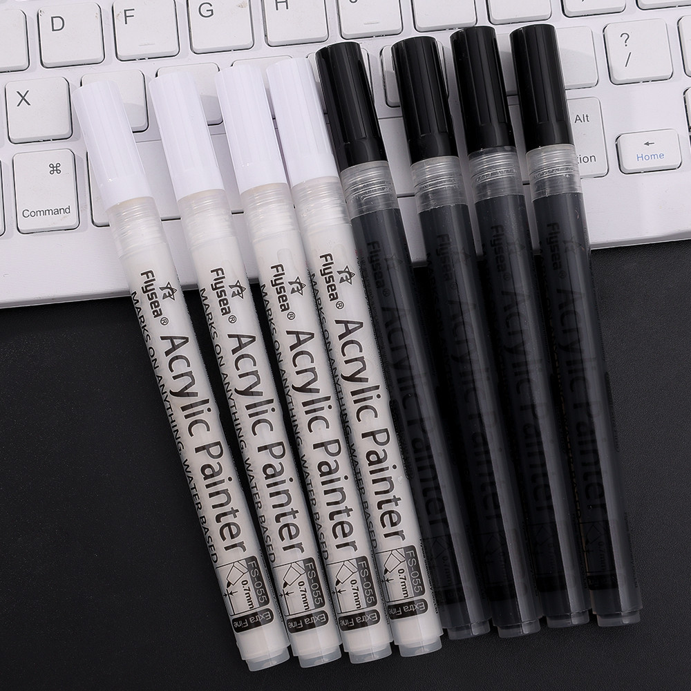 Acrylic Graffiti Marker - 0.7mm Black&White Paint Pen - Extra Fine Point Acrylic Marker Pens - Non-toxic Permanent Marker Pen - Waterproof, Quick Dry - for Wood,Glass and Metal
