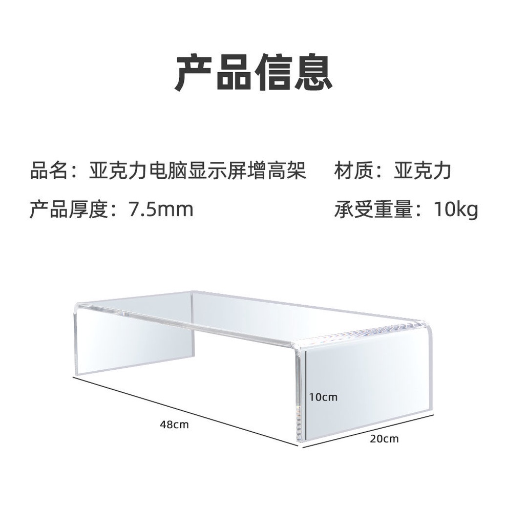 Acrylic Monitor Stand Laptop Stand Acrylic Bed Tray Small Computer Desk Office Accessories U-shaped Storage Rack