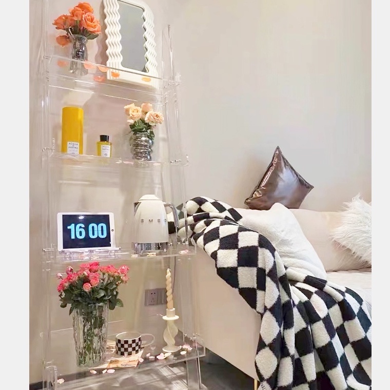Acrylic Shelf Storage Rack Transparent Bookshelf Ladder Storing Shelves Display Cabinet Cupboard