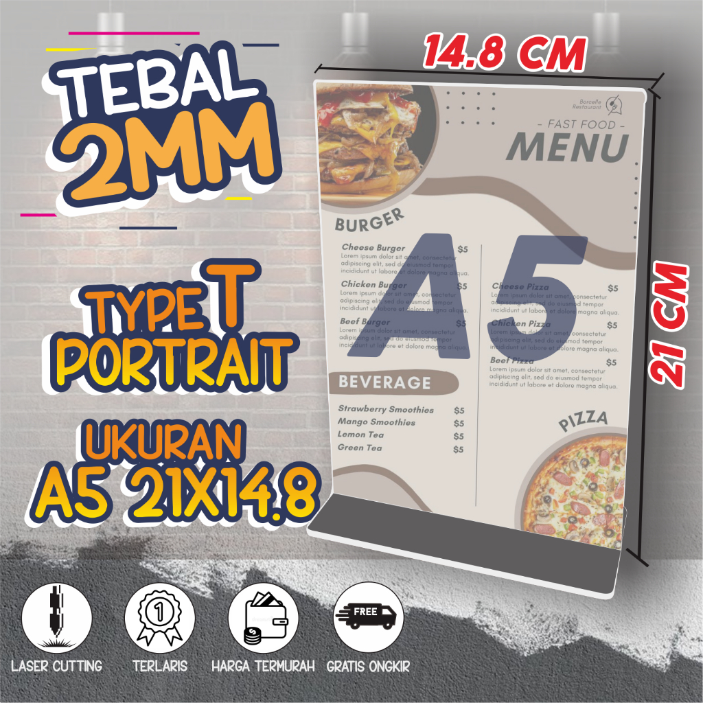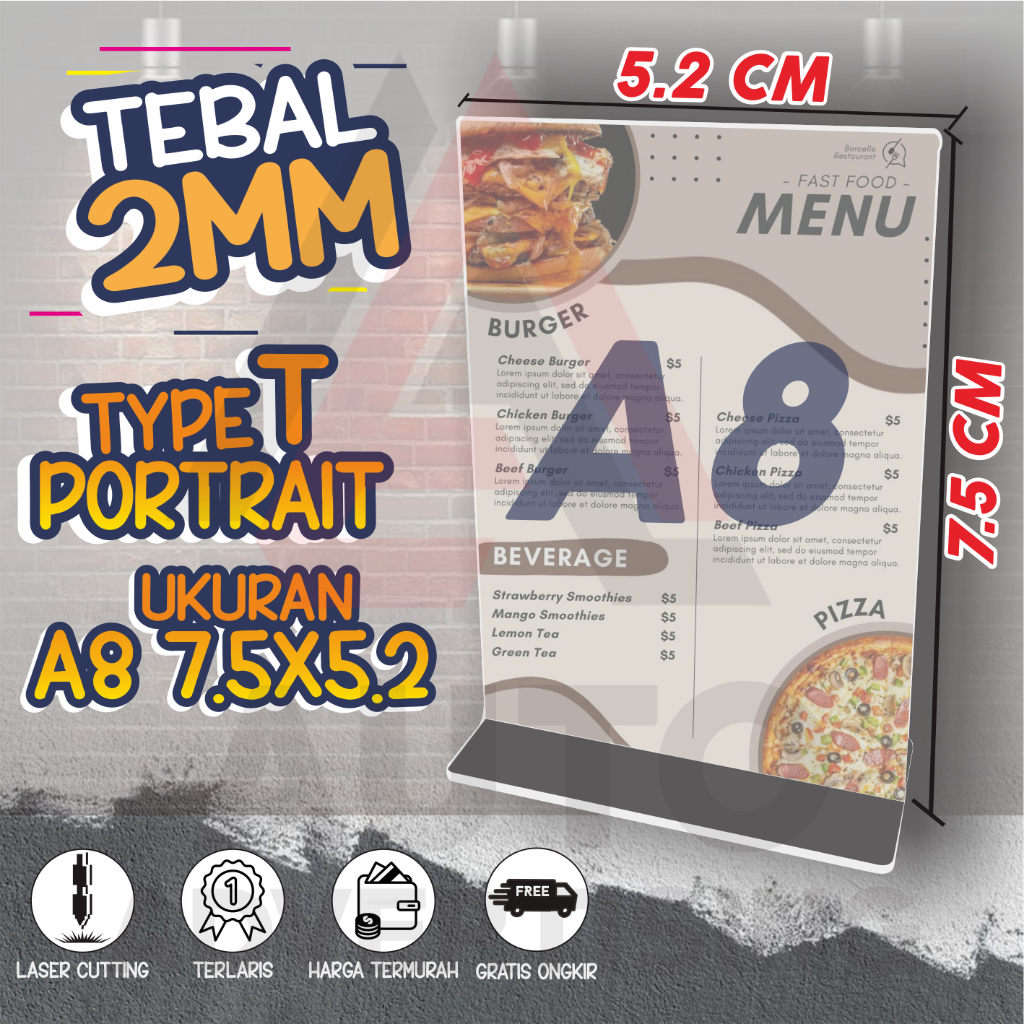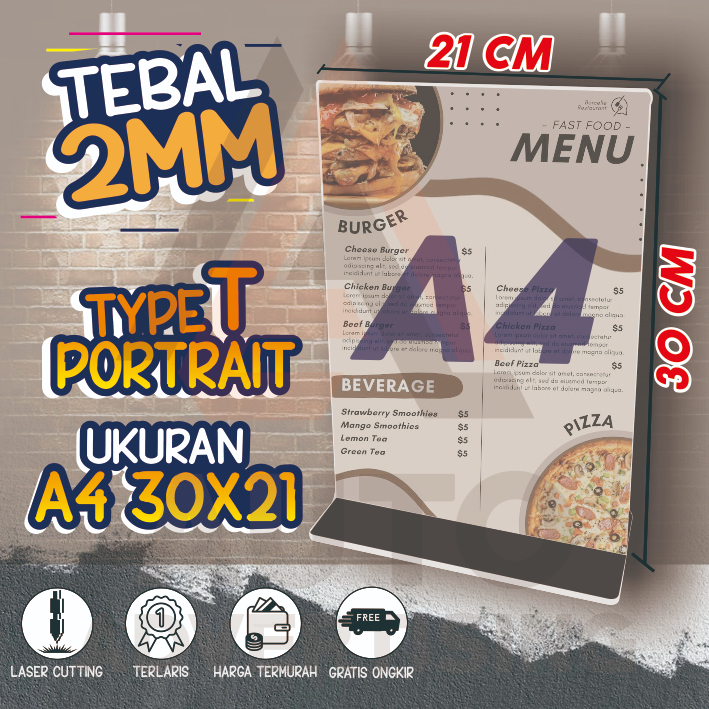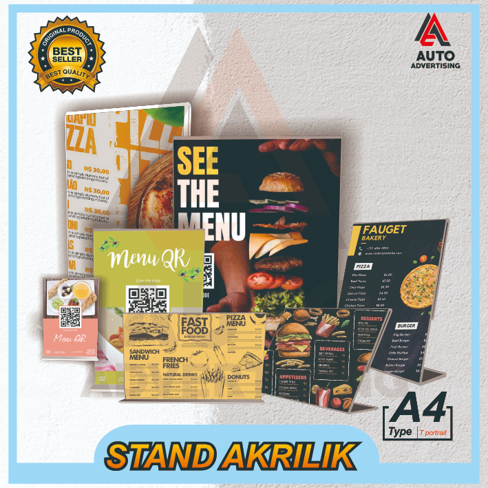 Acrylic Stand for Table Qris Brochures Size A4 A5 A6 A7 A8