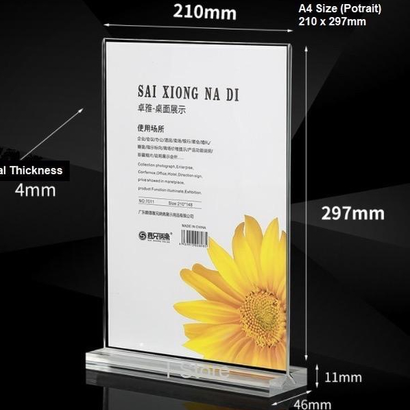 Acrylic T-Shape Card Display Stand I T Shape Card Display Holder, Landscape & Portrait [A4 & A5] / L Shape A4 Display