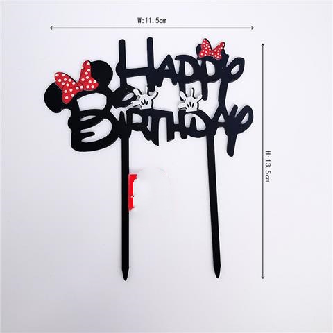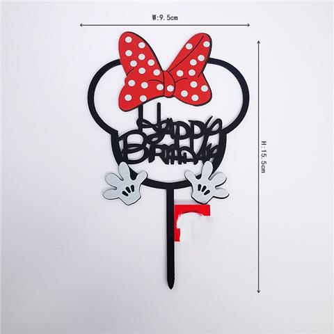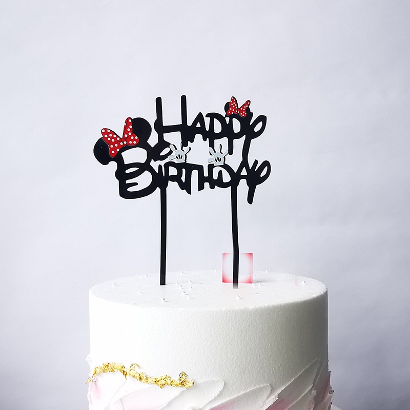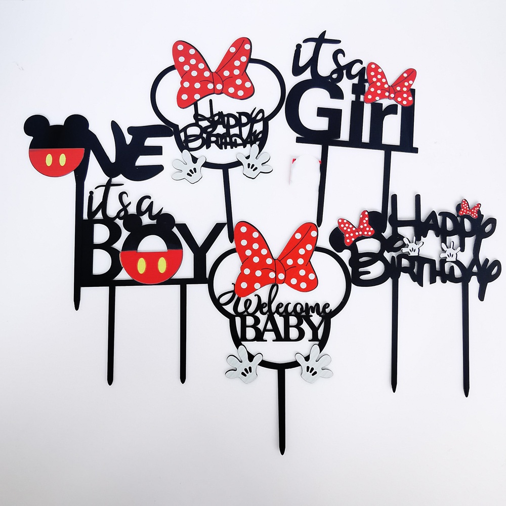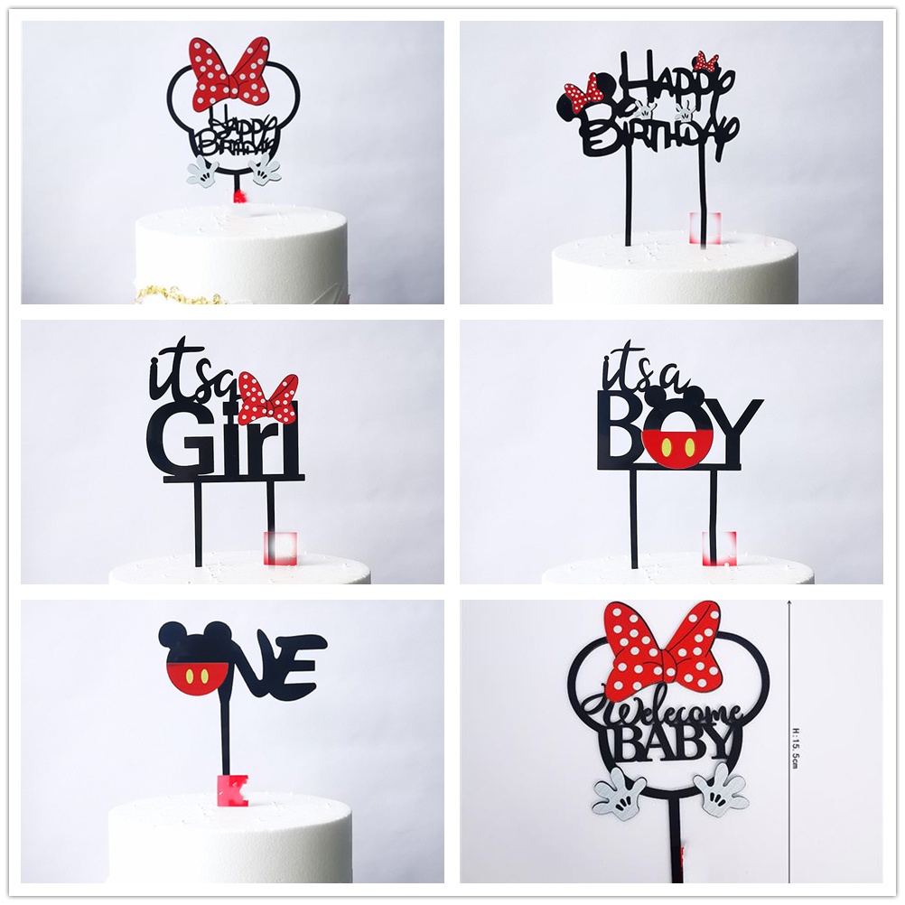 Acrylic minnie Mickey mouse Cake topper Boy Girls Cute Bow happy birthday Cake topper For Children's Birthday Party Cake Decoration Baby Shower